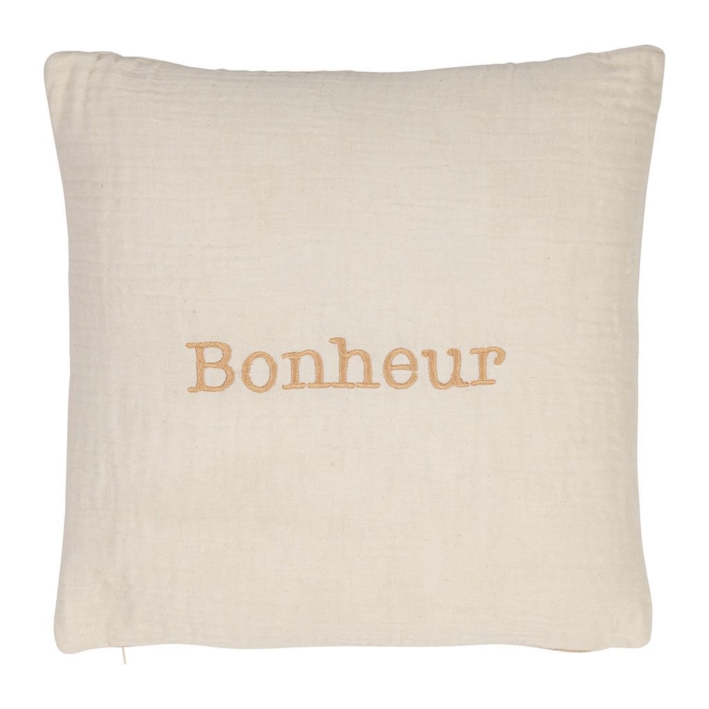 Housse de coussin bonheur en gaze de coton écru 45x45cm