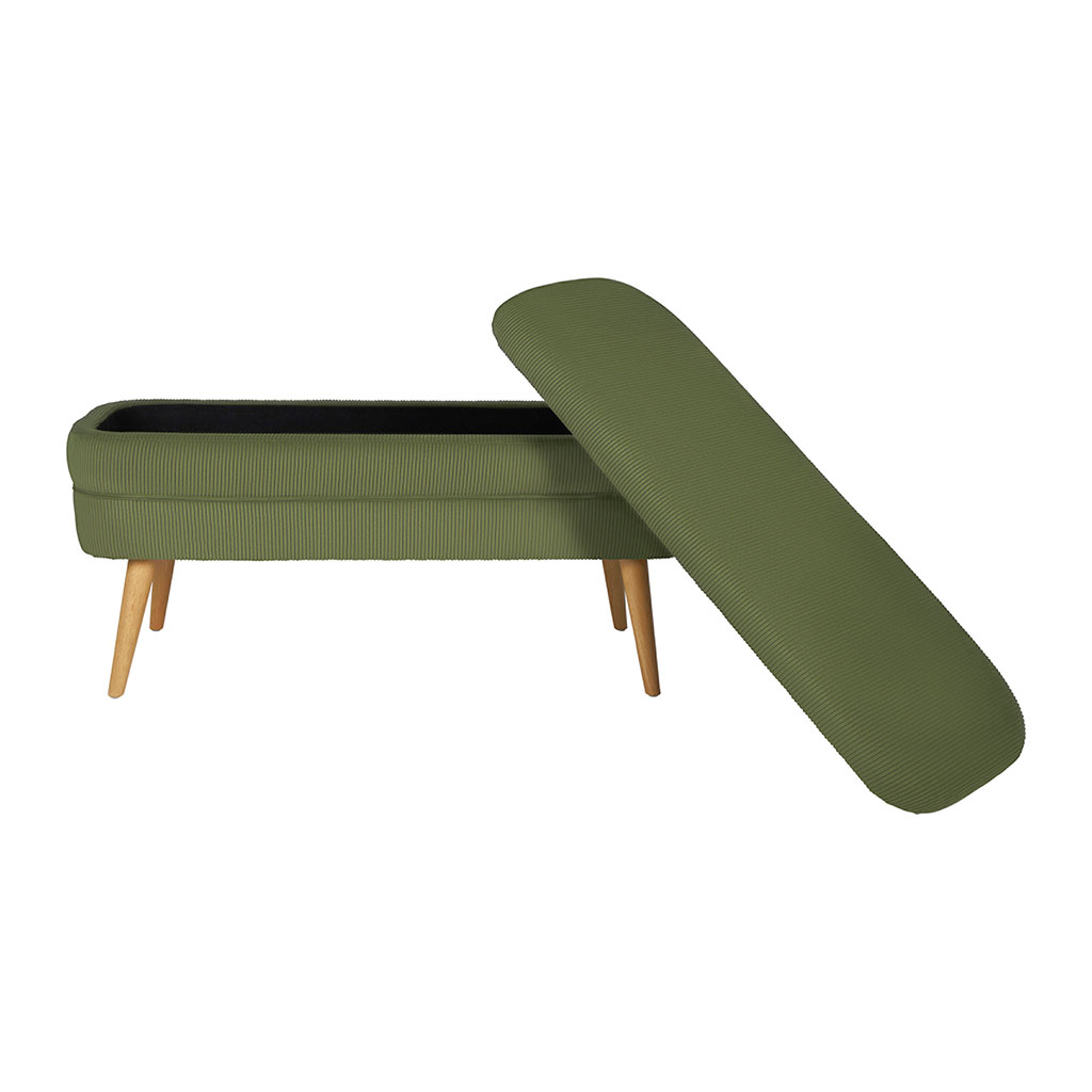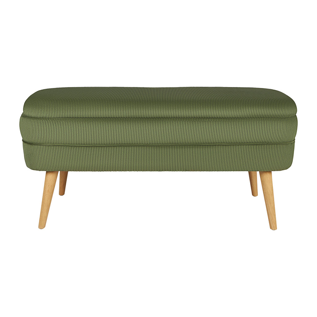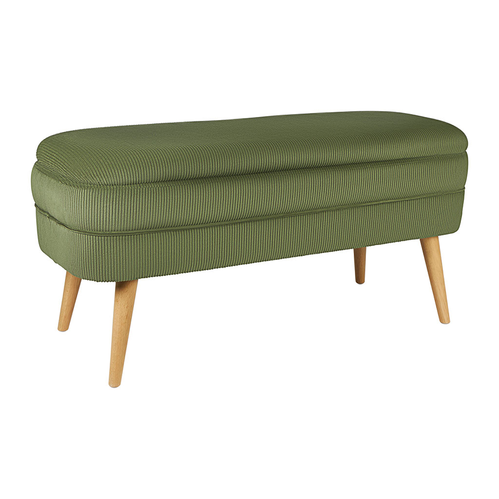 Découvrez le Banc coffre en velours côtelé kaki - Eleonor, un meuble à la fois pratique et élégant qui ajoutera une touche sophistiquée à votre intérieur.