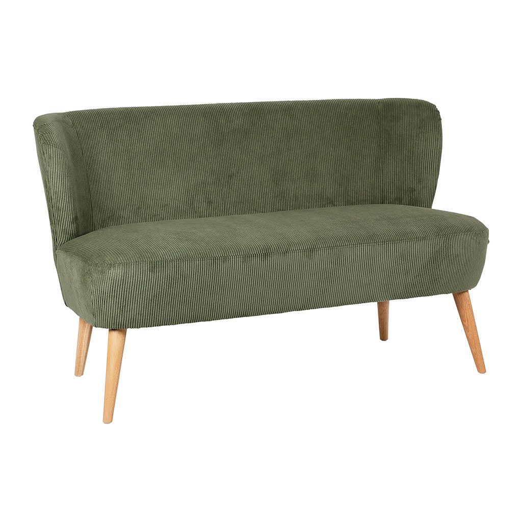 Transformez votre espace de vie avec la banquette 2 places en velours côtelé kaki Eleonor.