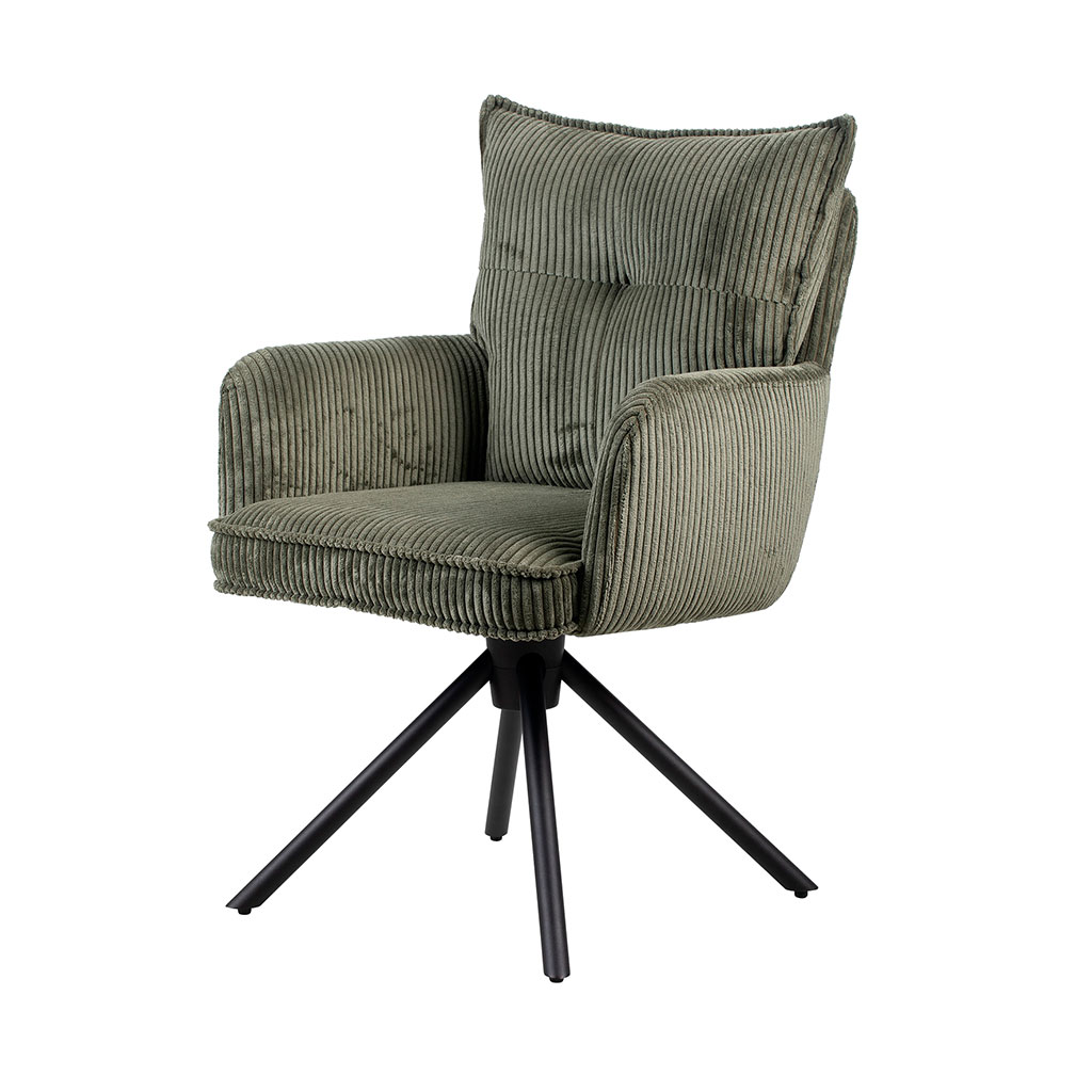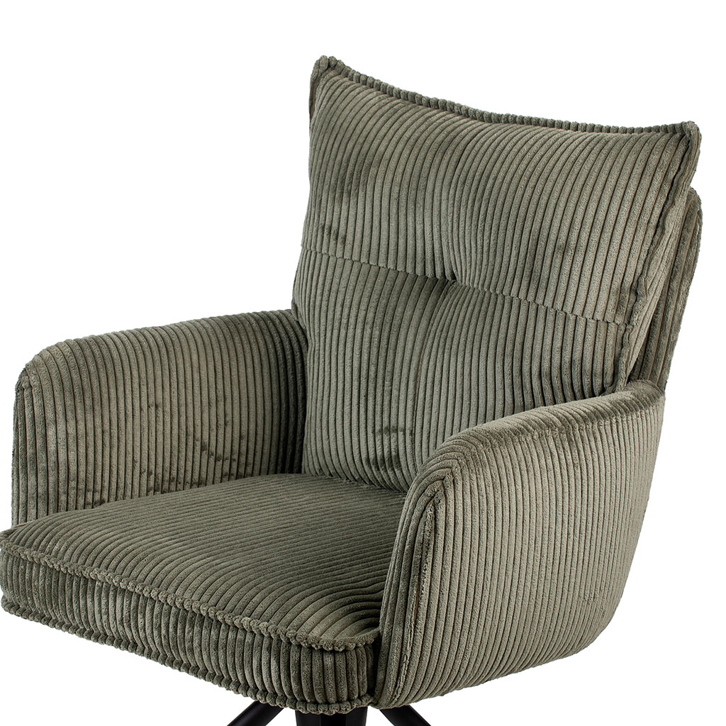 05 56 69 68 67-contact@fabriquedestyles.frChaise avec accoudoirs pivotante en velours côtelé vert - Moda