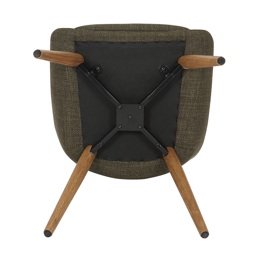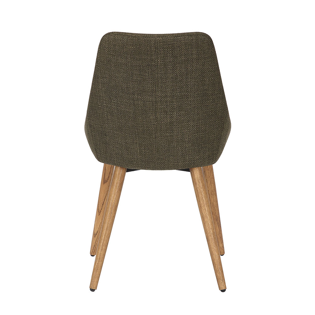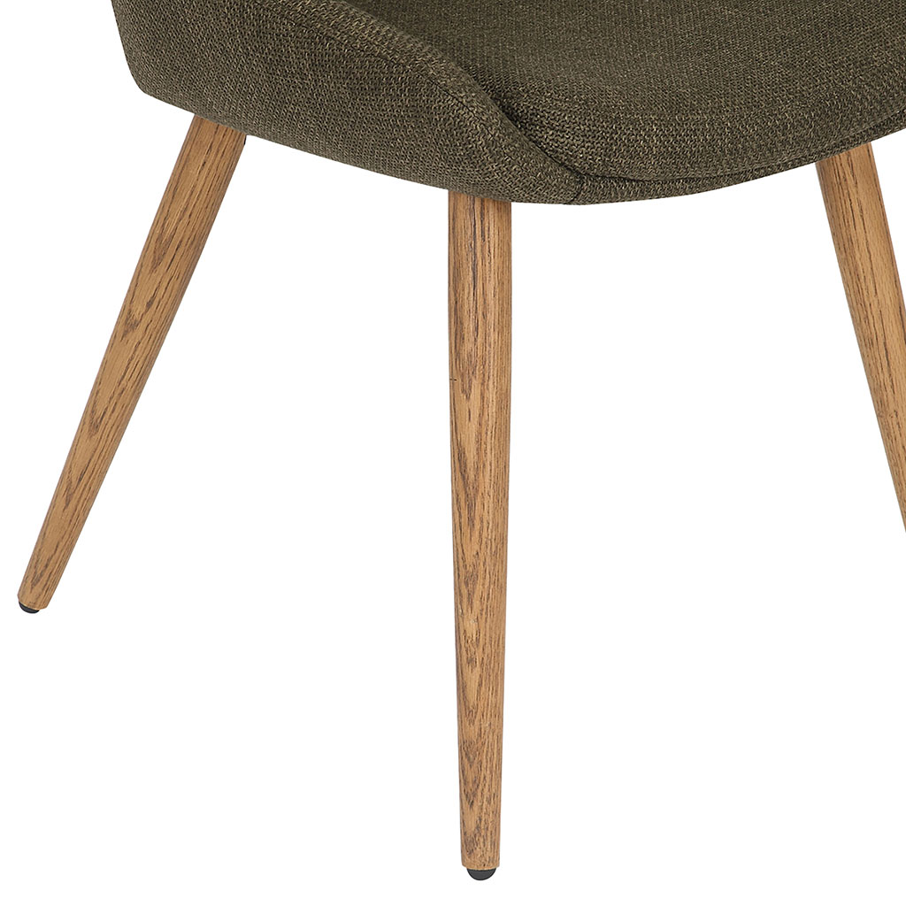 Avec son revêtement en tissu kaki et ses pieds en chêne foncé, cette chaise apporte une touche de couleur subtile et naturelle à votre espace repas.
