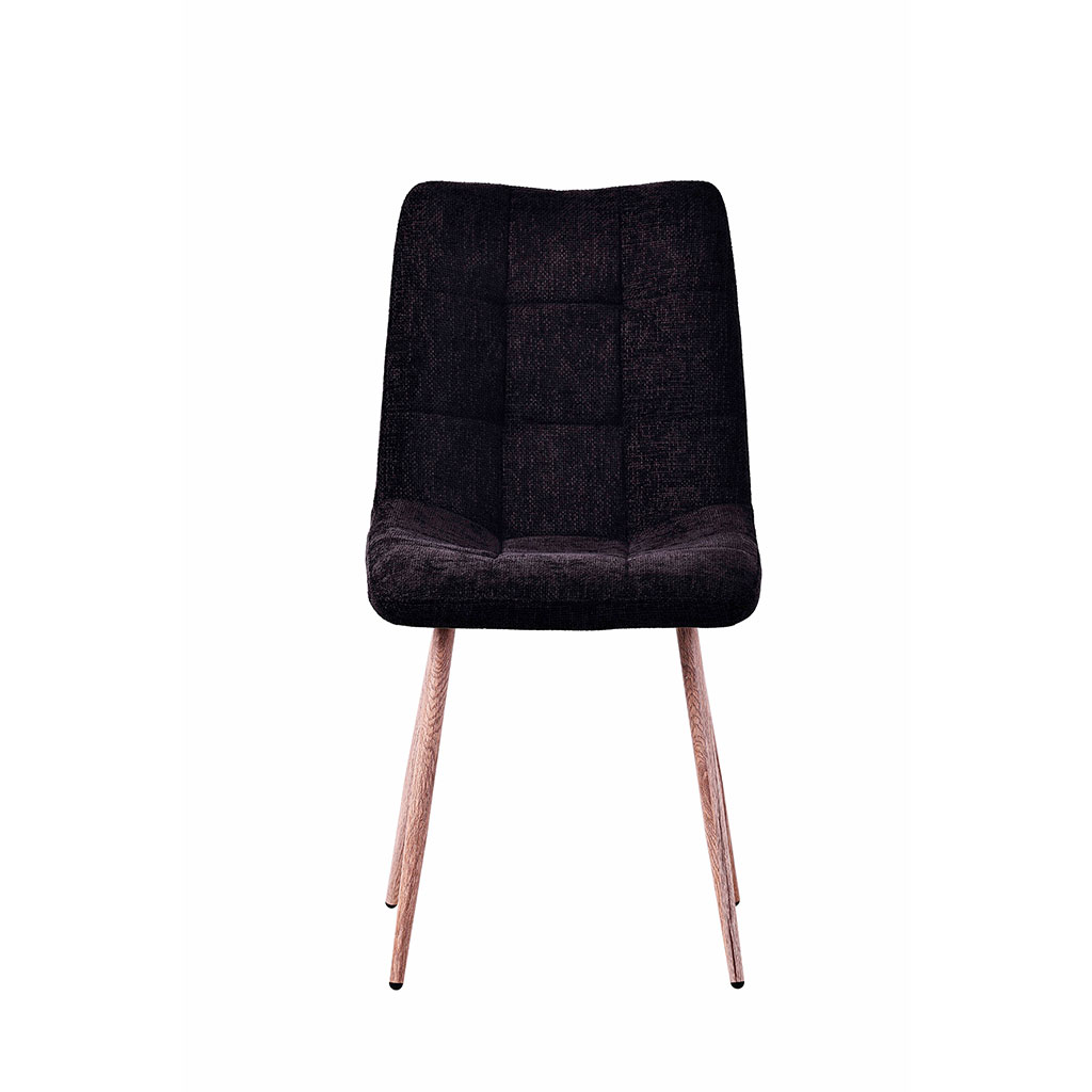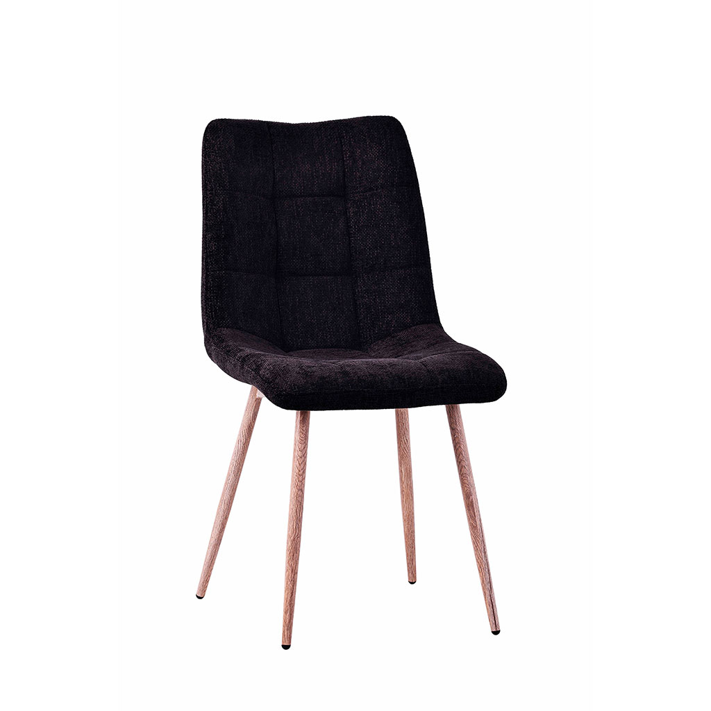La chaise Oslo se pare d'un revêtement textile chiné aux nuances noir marron intenses.