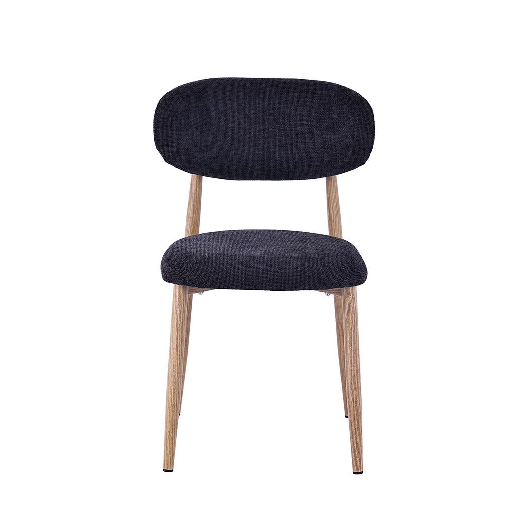 05 56 69 68 67-contact@fabriquedestyles.frChaise de salle à manger en tissu noir et pieds en métal effet bois - Copenhague