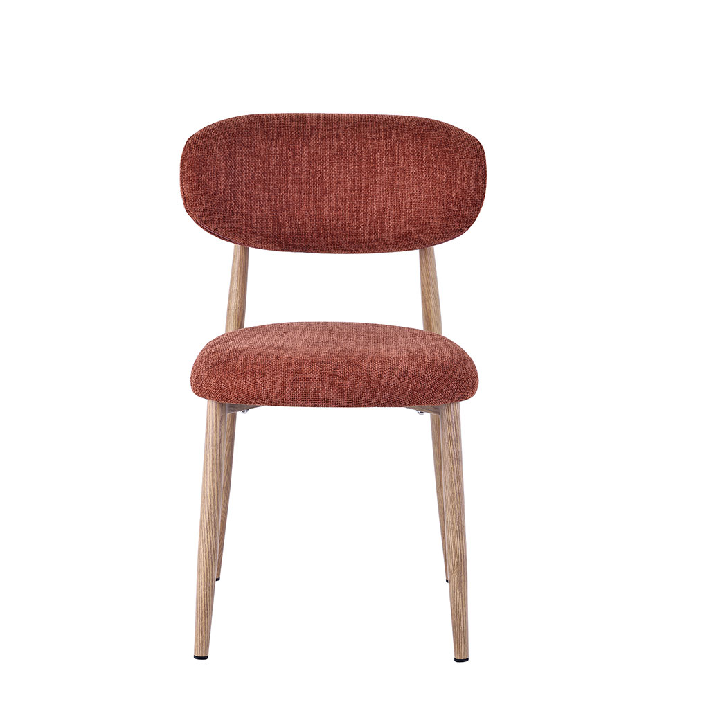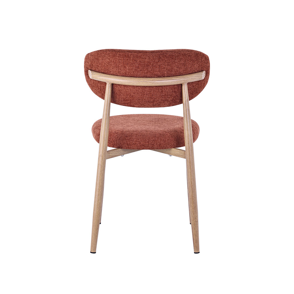 05 56 69 68 67-contact@fabriquedestyles.frChaise de salle à manger en tissu terracotta et pieds en métal effet bois - Copenhague