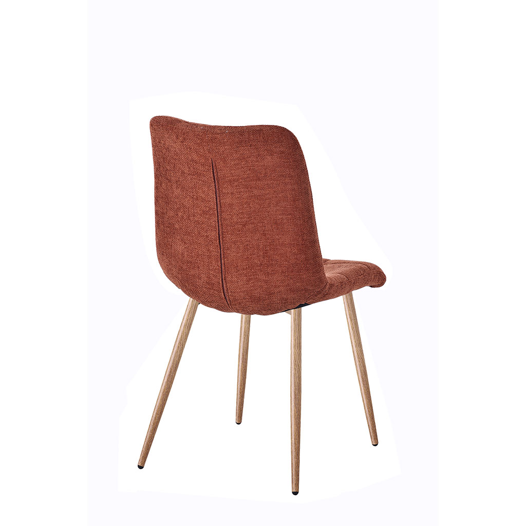 05 56 69 68 67-contact@fabriquedestyles.frChaise de salle à manger en tissu terracotta et pieds en métal effet bois - Oslo