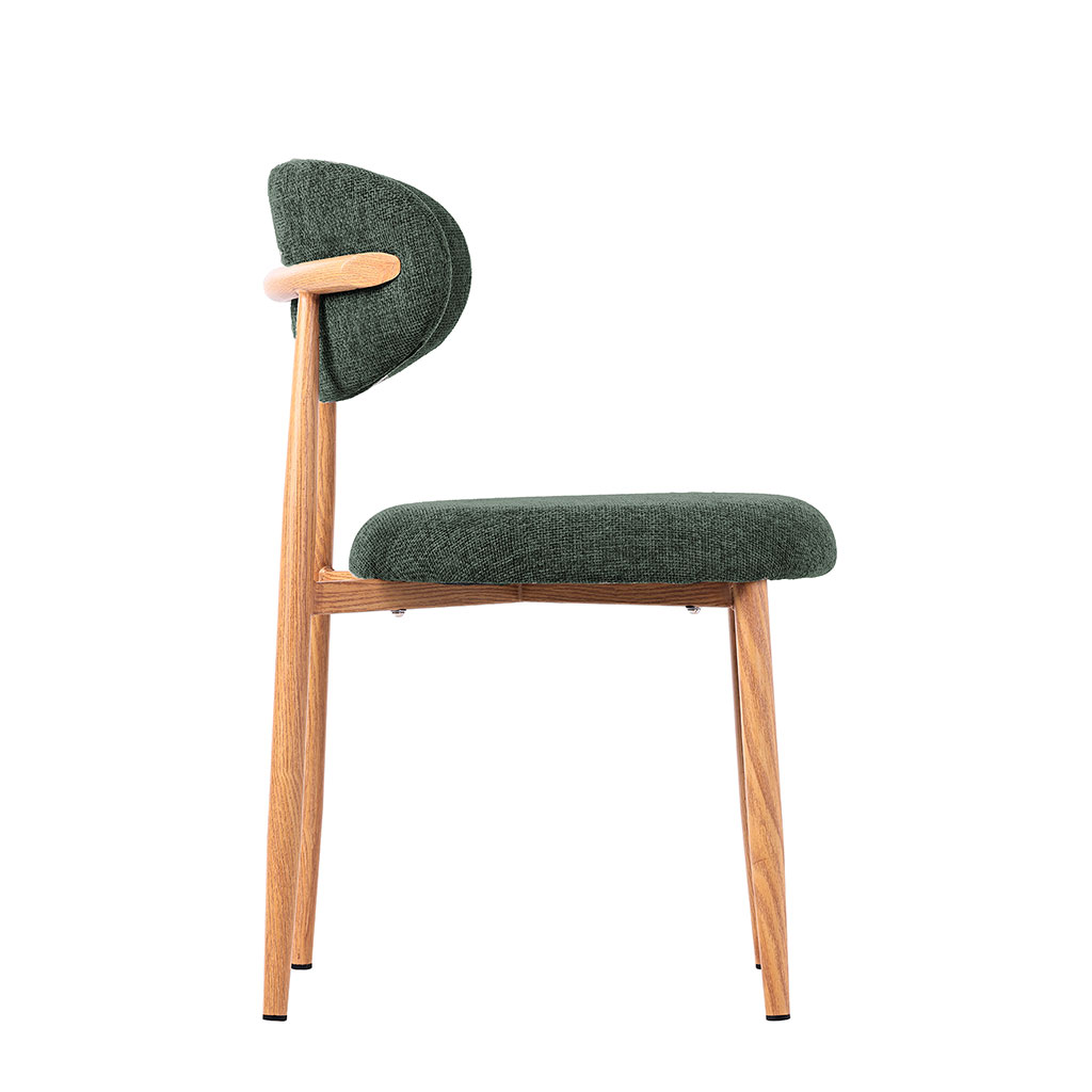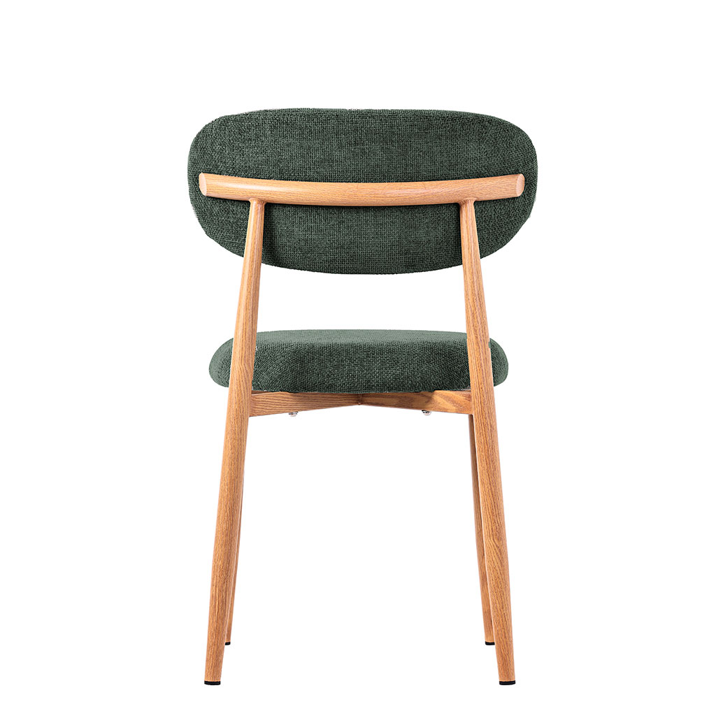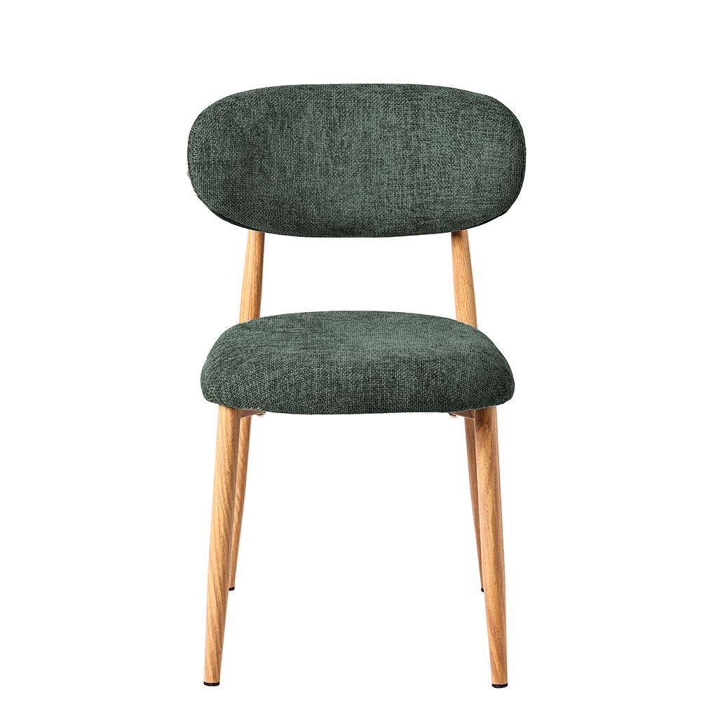 05 56 69 68 67-contact@fabriquedestyles.frChaise de salle à manger en tissu vert et pieds en métal effet bois - Copenhague
