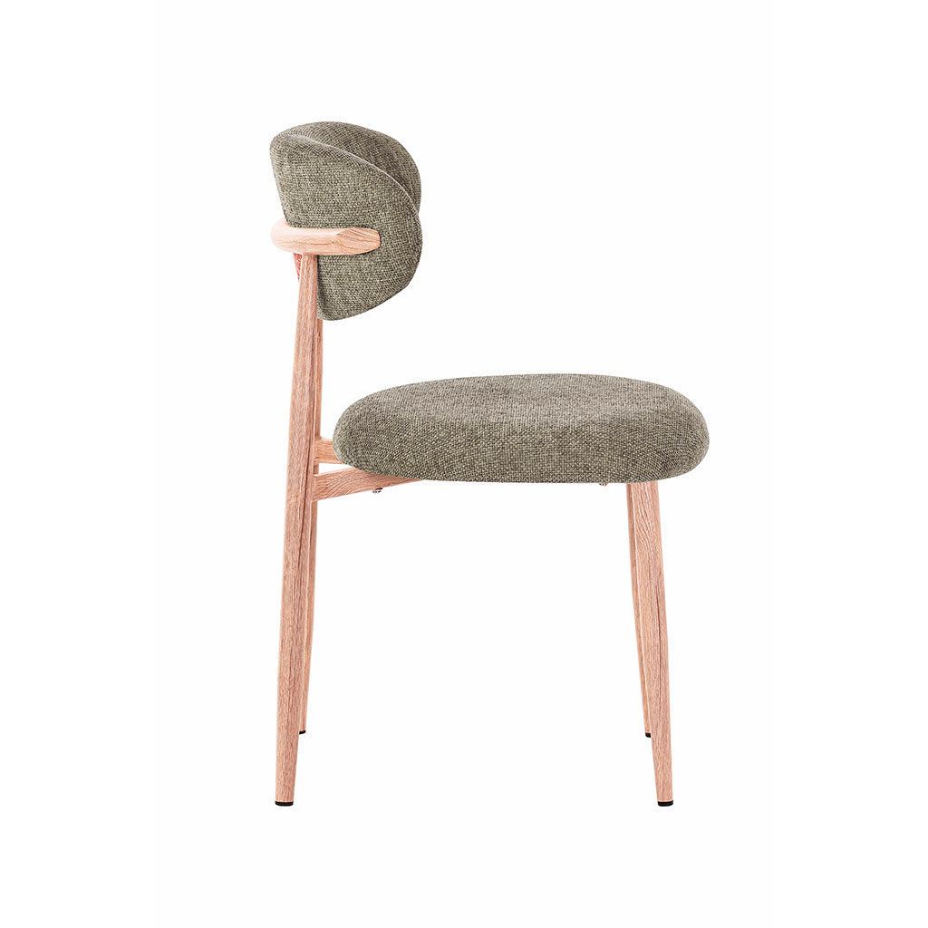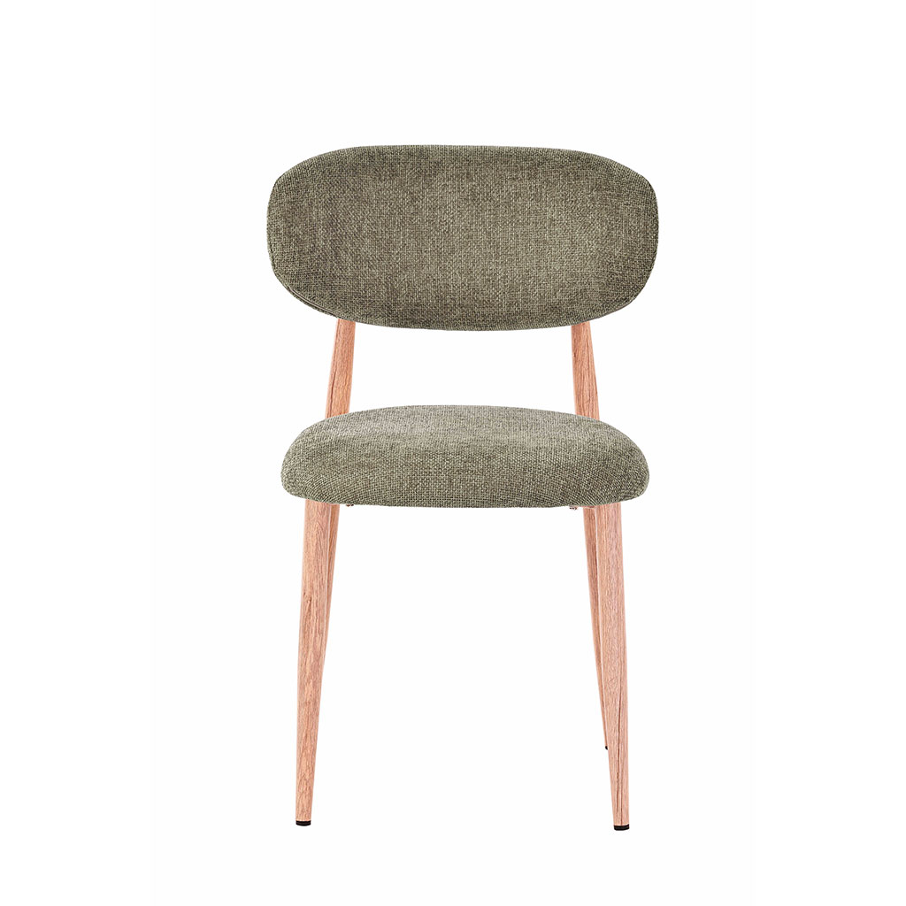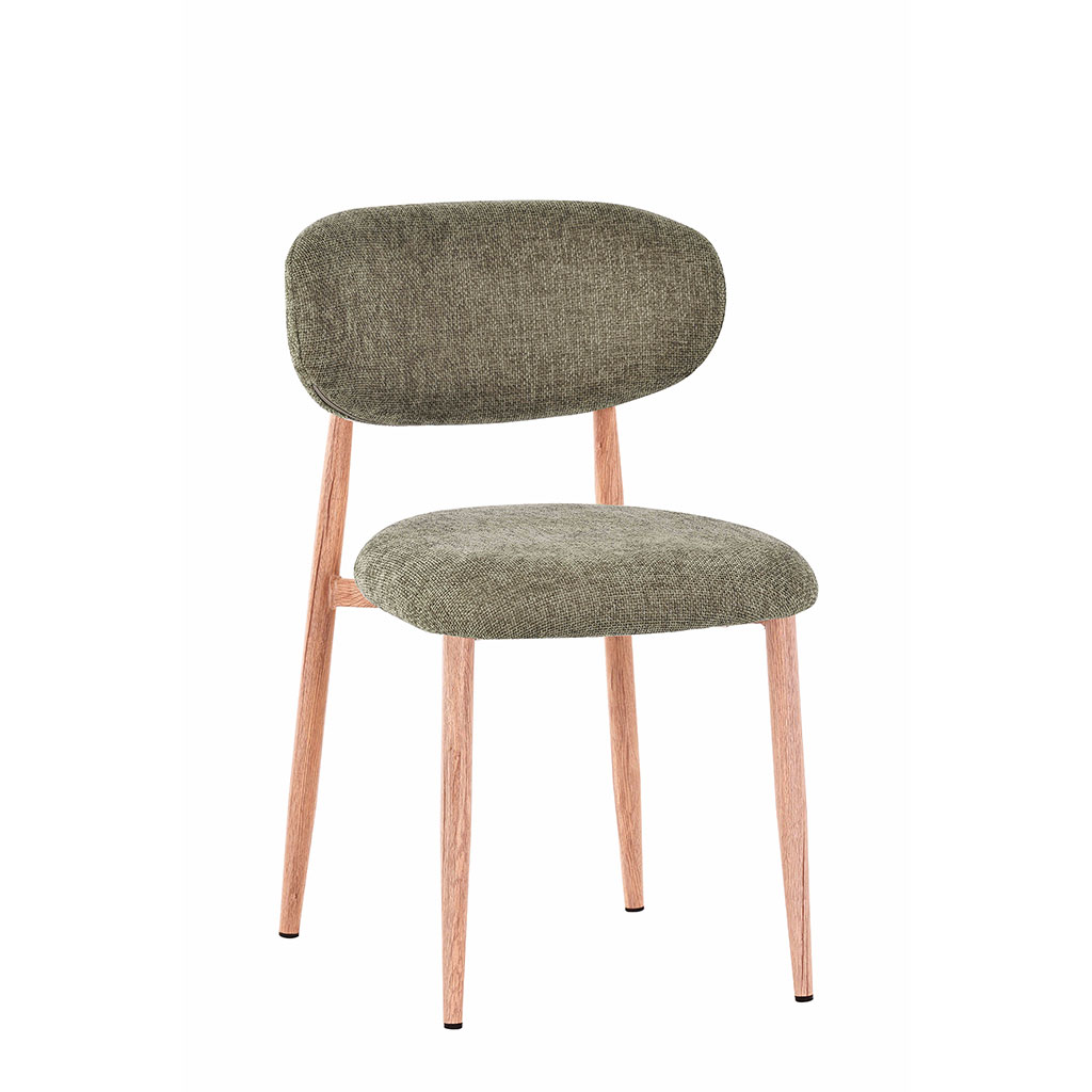 05 56 69 68 67-contact@fabriquedestyles.frChaise de salle à manger en tissu vert et pieds en métal effet chêne clair - Copenhague