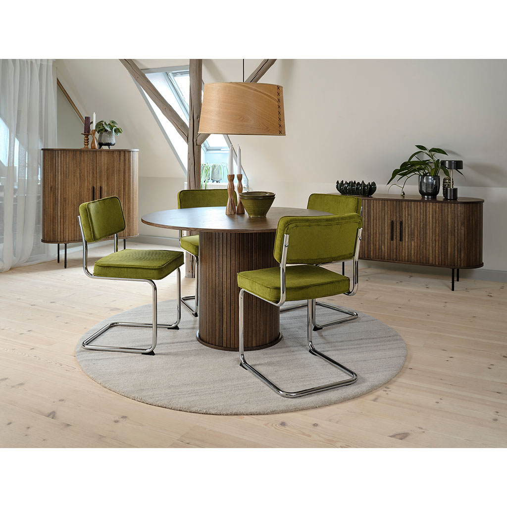 La chaise Rupert en tissu côtelé vert apporte une identité visuelle marquée à votre intérieur grâce à sa silhouette qui puise ses inspirations dans les codes du design industriel.