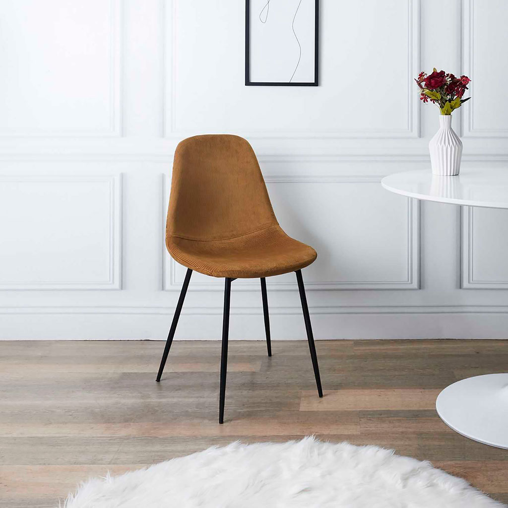 La chaise Julia en velours côtelé moutarde est parfaite pour dynamiser votre coin repas.