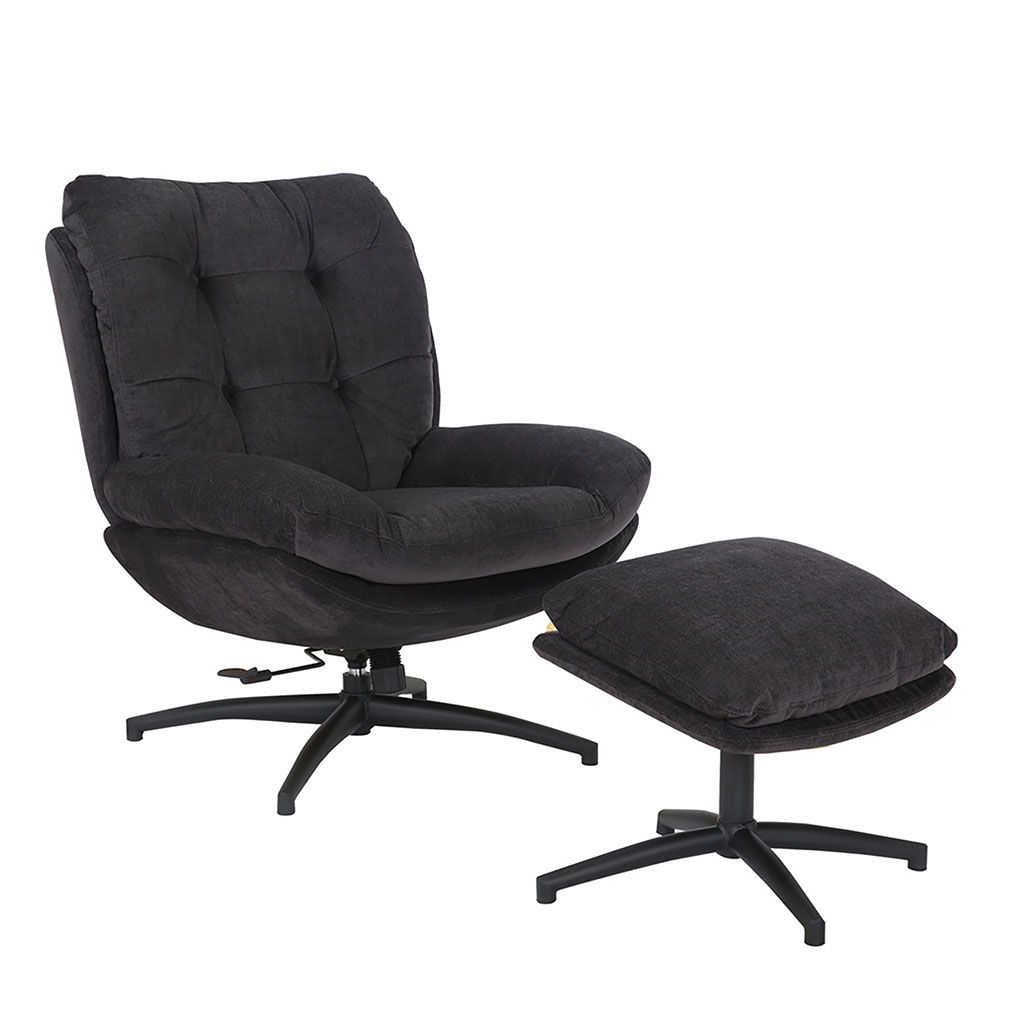 Ajoutez une touche de confort et de style à votre maison avec le fauteuil avec repose-pieds en tissu noir - Carles.
