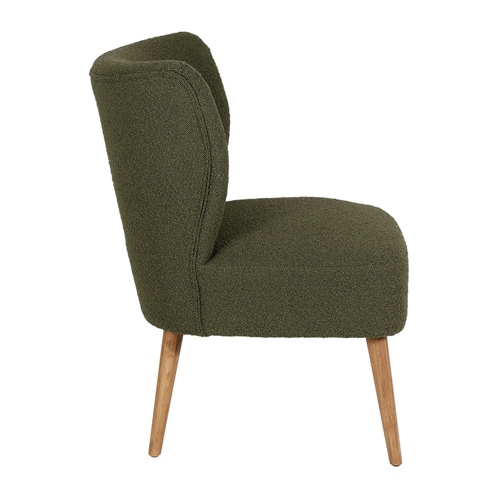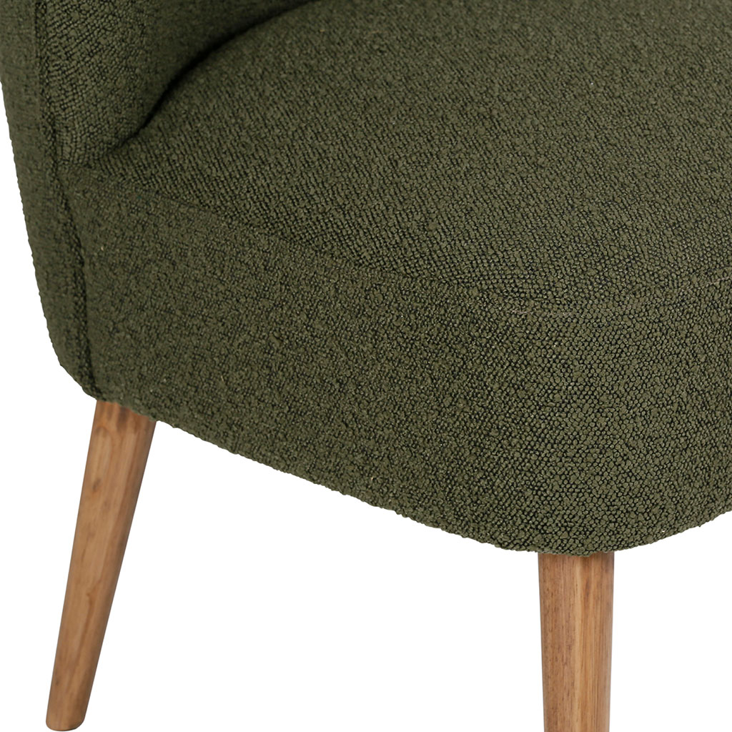 Découvrez notre fauteuil en bouclette vert Eleonor, du mobilier qui allie confort et design.