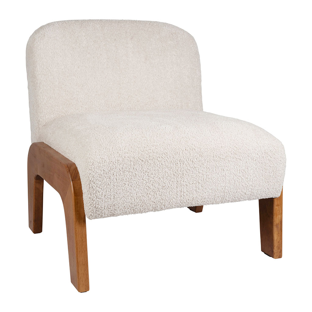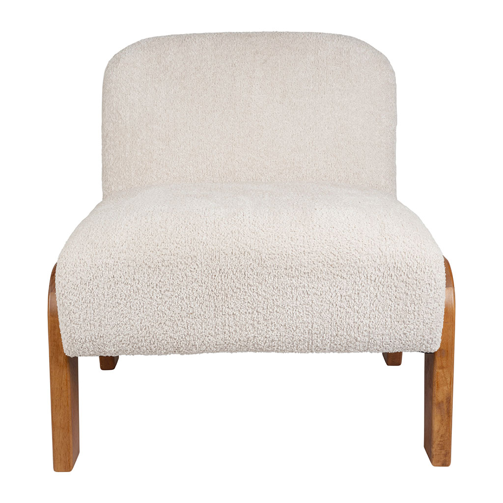 Le tissu écru qui recouvre ce fauteuil est doux au toucher, apportant une sensation agréable à chaque utilisation, qu'il s'agisse de lire un livre captivant ou de discuter avec des amis.