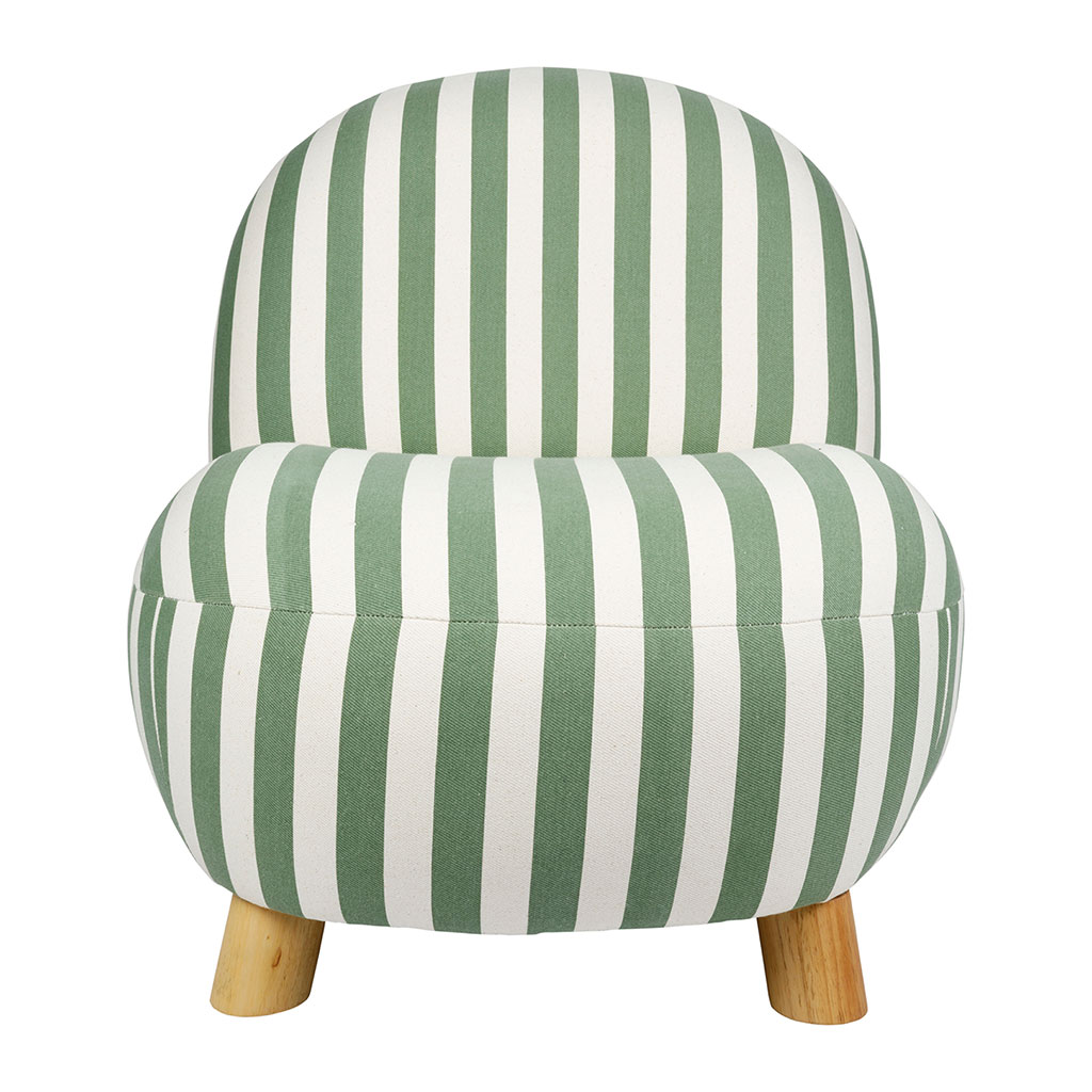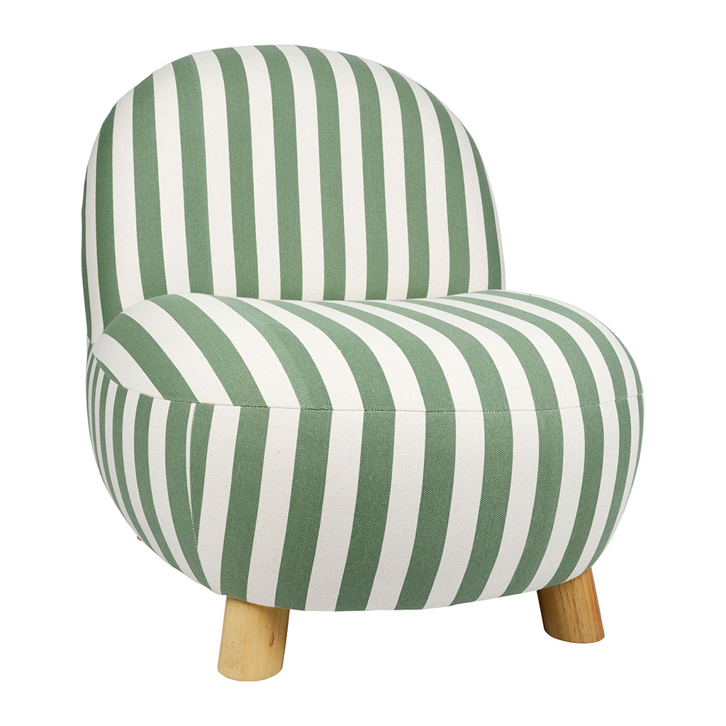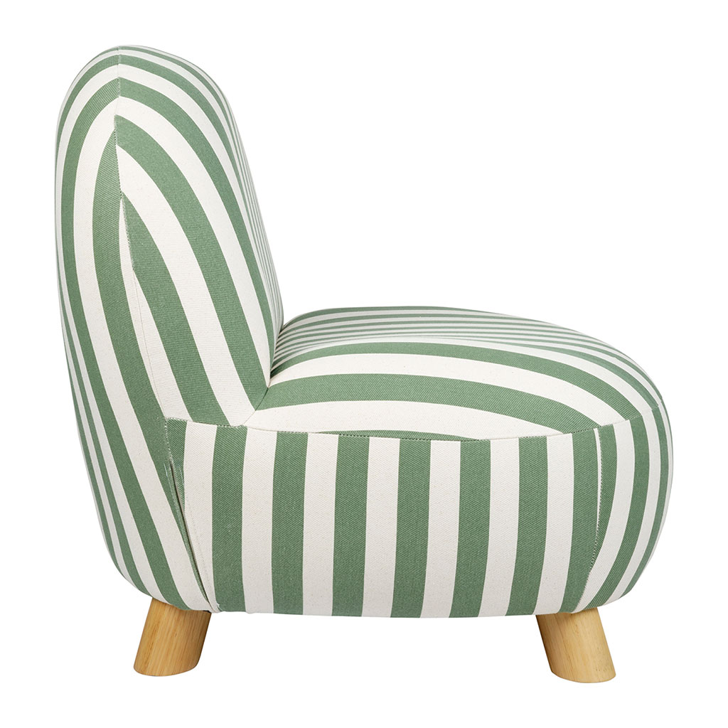 05 56 69 68 67-contact@fabriquedestyles.frFauteuil en coton rayé vert et bois d'hévéa - Belly