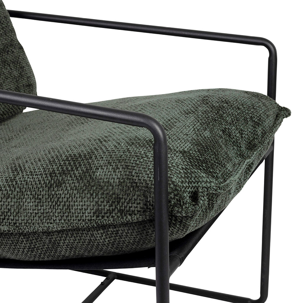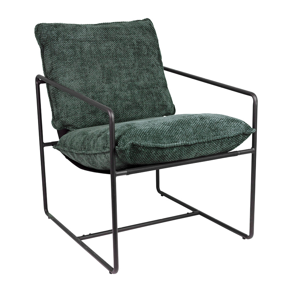 Ce fauteuil combine la robustesse d'une structure en fer avec la chaleur et le charme d'un tissu émeraude.