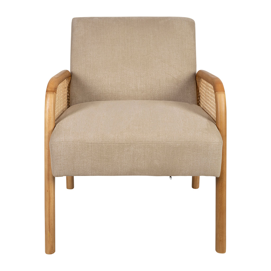 05 56 69 68 67-contact@fabriquedestyles.frFauteuil en tissu et hévéa beige - Firmin