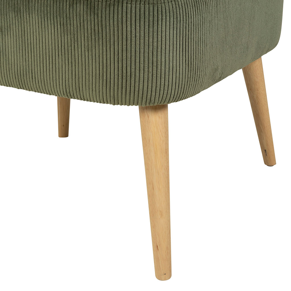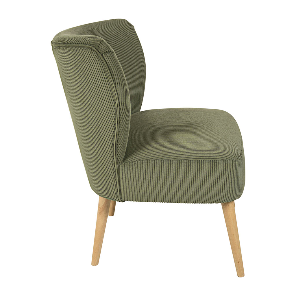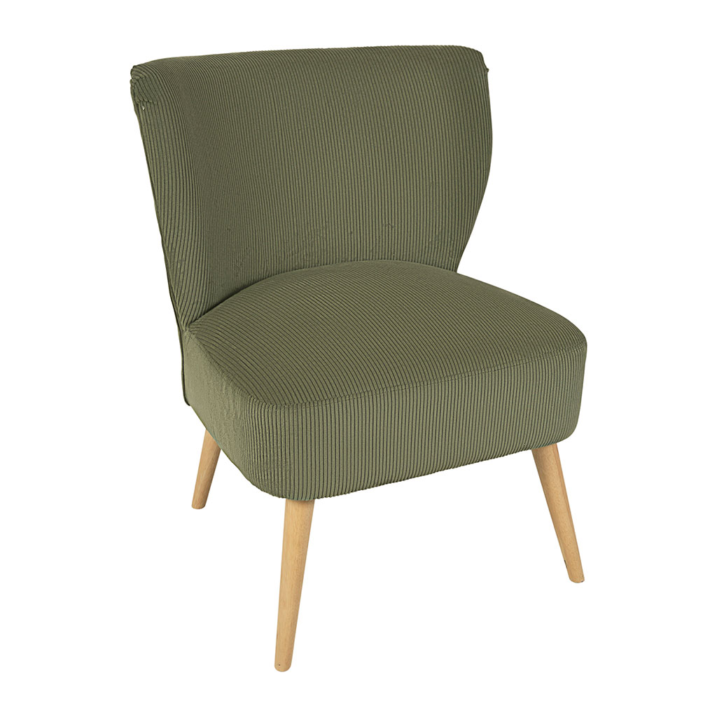 Ajoutez une touche de style et de confort à votre intérieur avec le fauteuil en velours côtelé kaki Eleonor.