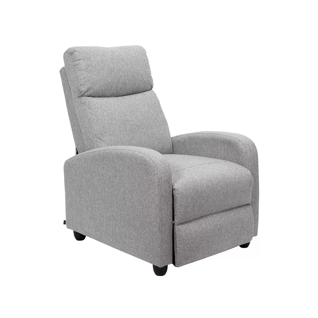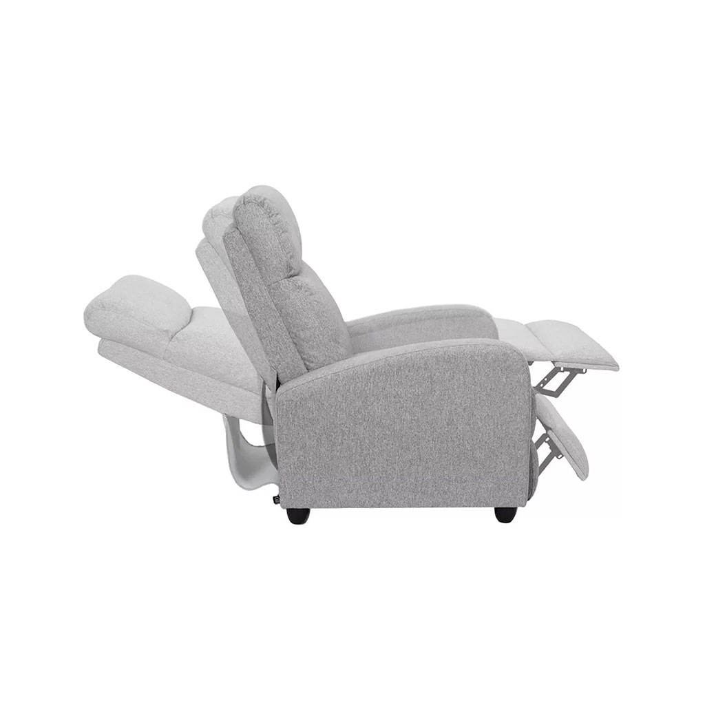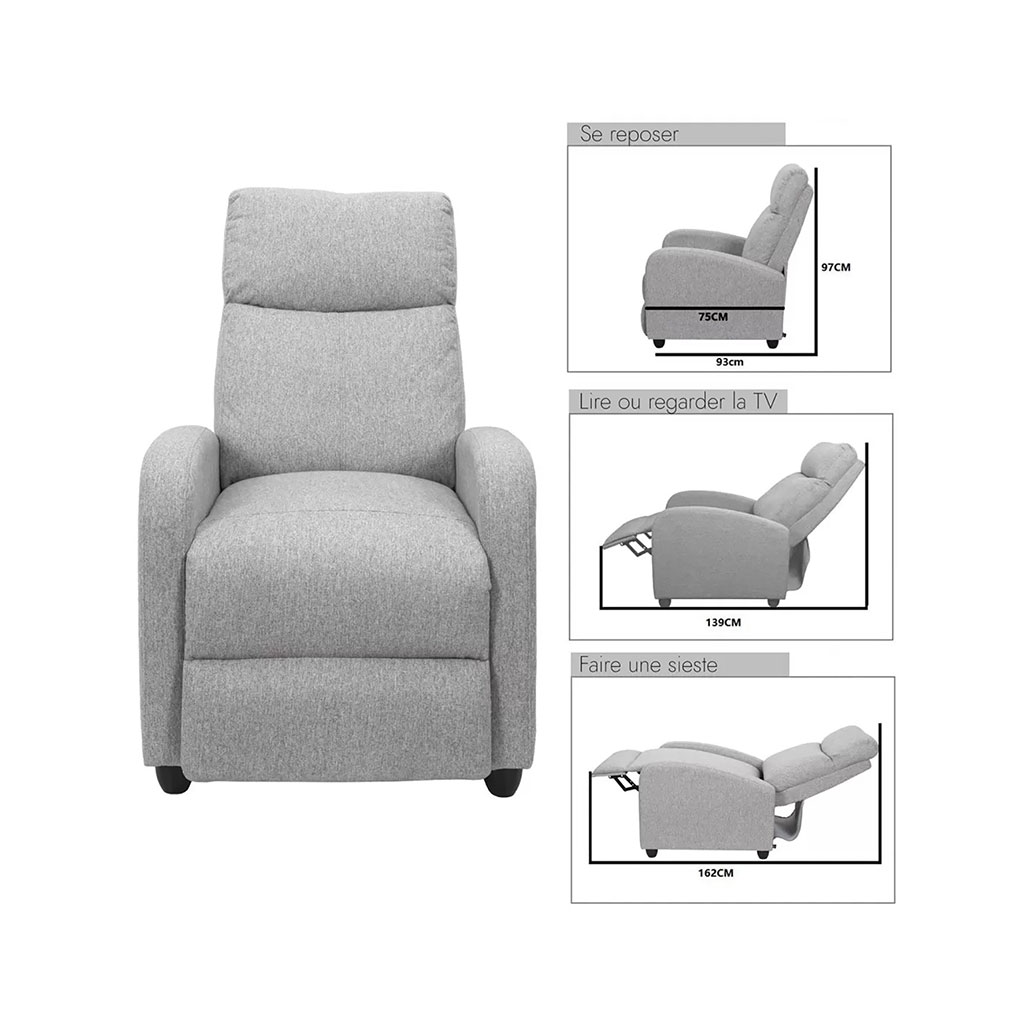 Découvrez le confort absolu avec ce fauteuil relaxant en tissu gris.