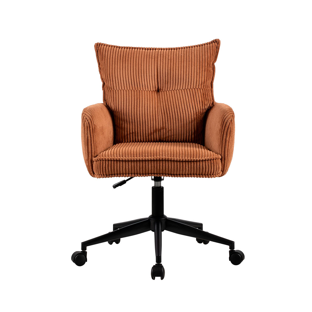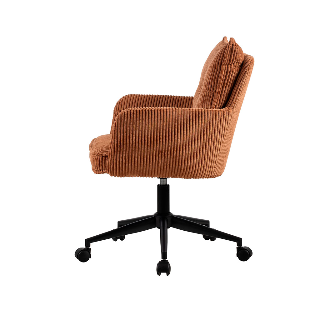 Transformez votre espace de travail avec cette chaise de bureau à roulettes en velours côtelé caramel.