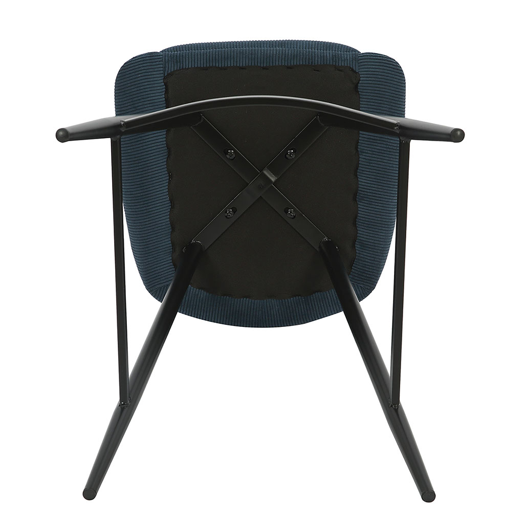 Son revêtement en velours côtelé bleu foncé apporte une touche de sophistication tout en restant chaleureux.