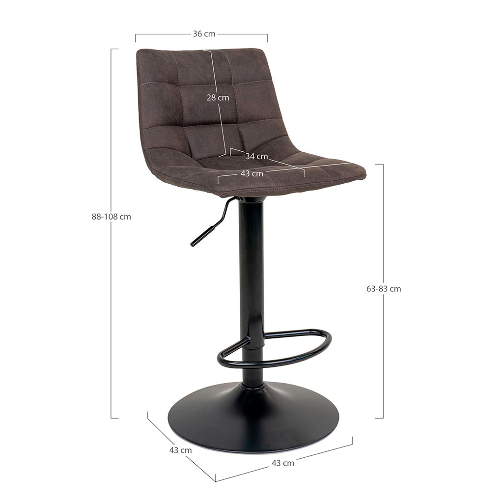 05 56 69 68 67-contact@fabriquedestyles.frChaise de bar pivantante réglable h88-108cm en microfibre marron - Middelfart