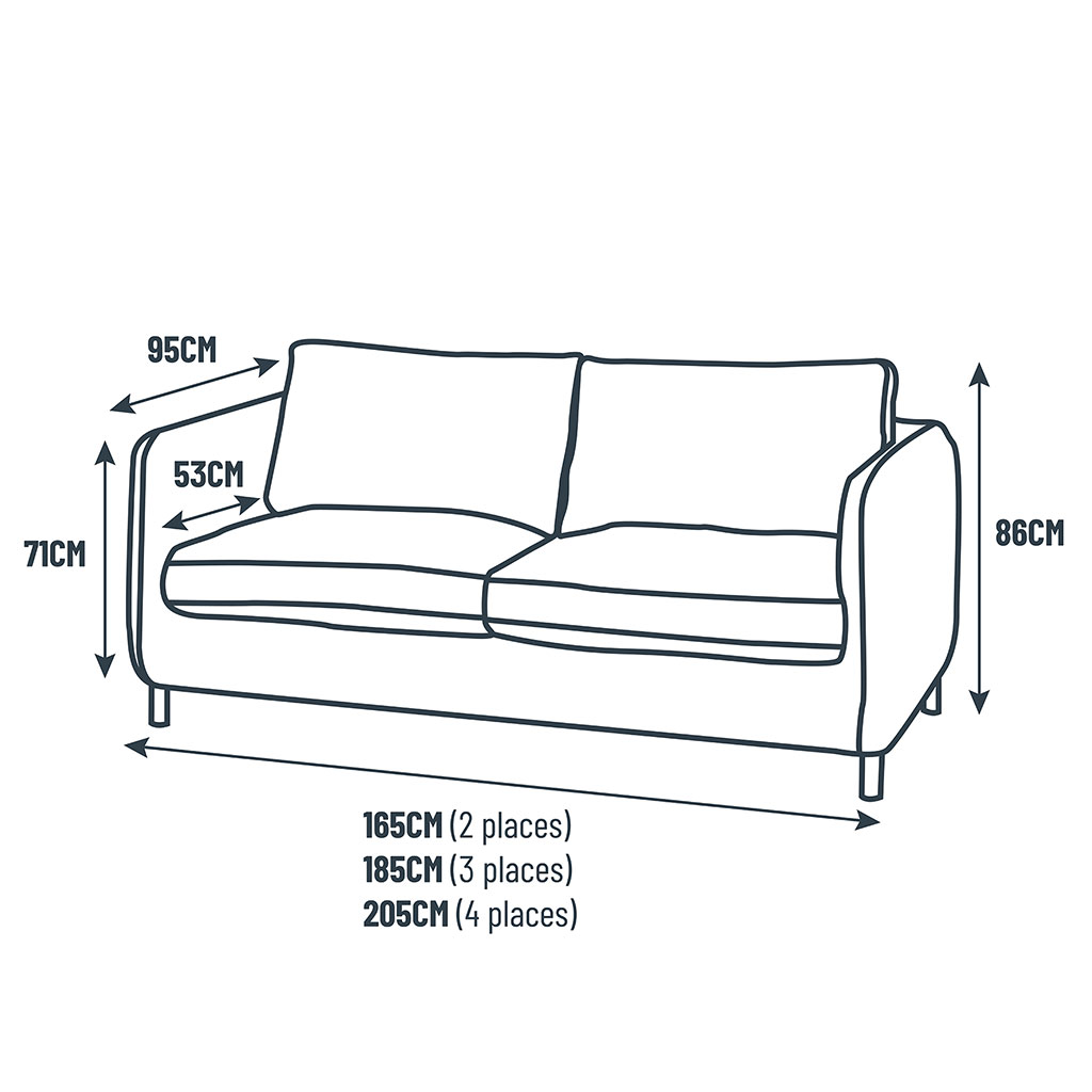 Assise: Coussins non déhoussables indépendants en mousse PE 28 Kg/m3 et fibre polyester.