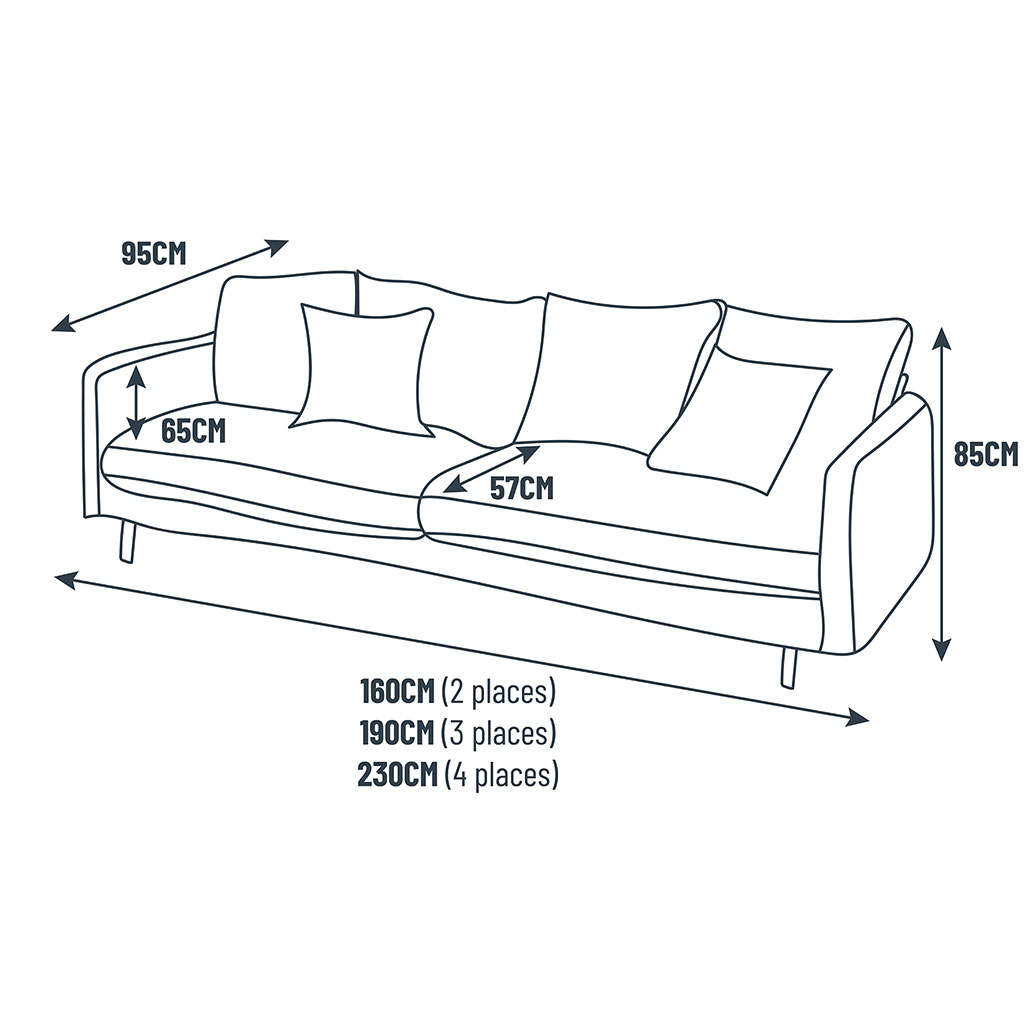 Sa ligne élancée associé à tous ses coussins, fait de lui un canapé parfait pour se détendre.