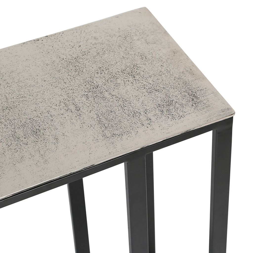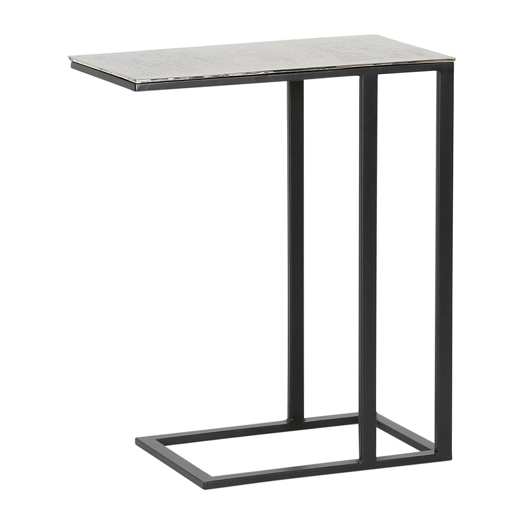 Découvrez le bout de canapé en aluminium et fer argenté Felia, mesurant 51x26xh61cm.