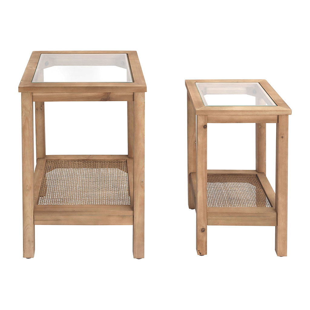 05 56 69 68 67-contact@fabriquedestyles.frLot de 2 tables d'appoint en sapin et verre naturel - Firmin