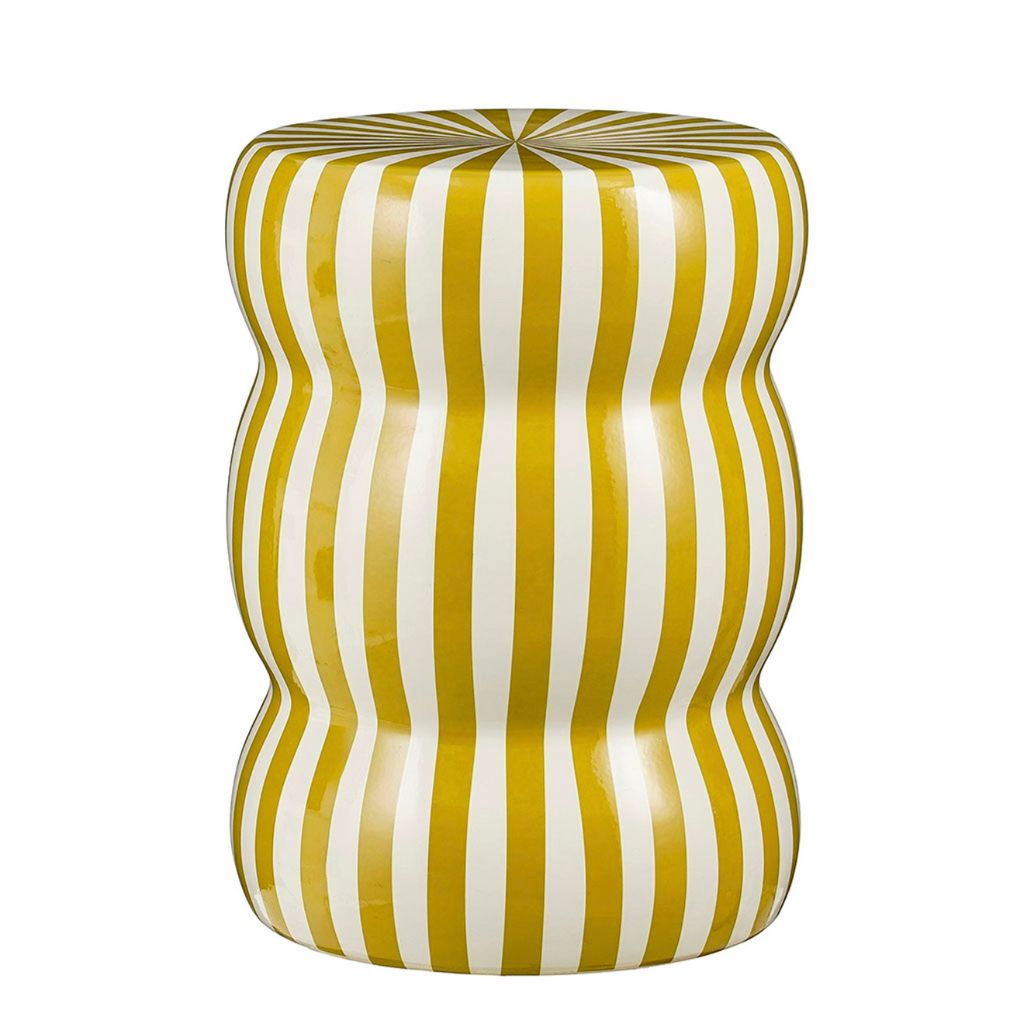 05 56 69 68 67-contact@fabriquedestyles.frTable d'appoint en céramique rayé écru et ocre d32cm - Skipper