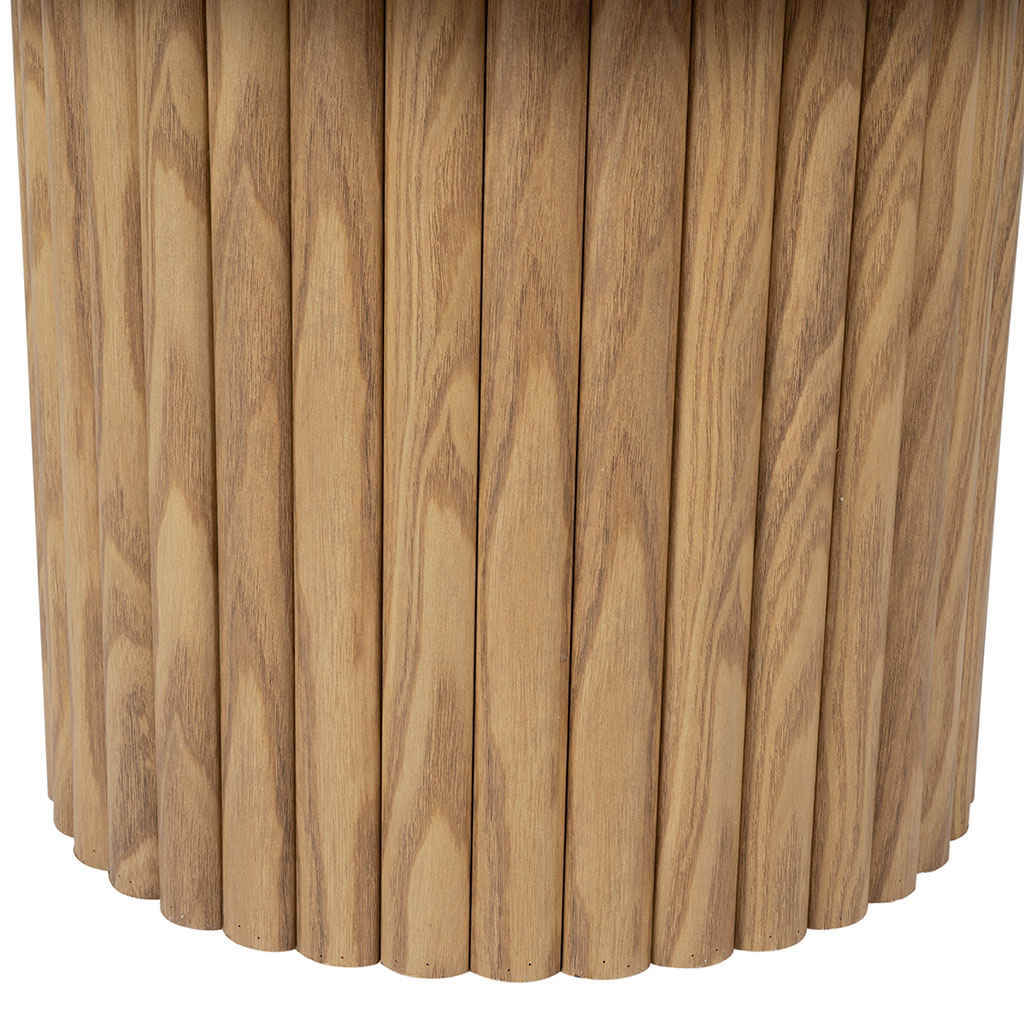 Ce meuble rond en panneau de bois naturel se distingue par son design contemporain et naturel. Il s'harmonise avec divers styles de décoration et de mobilier.