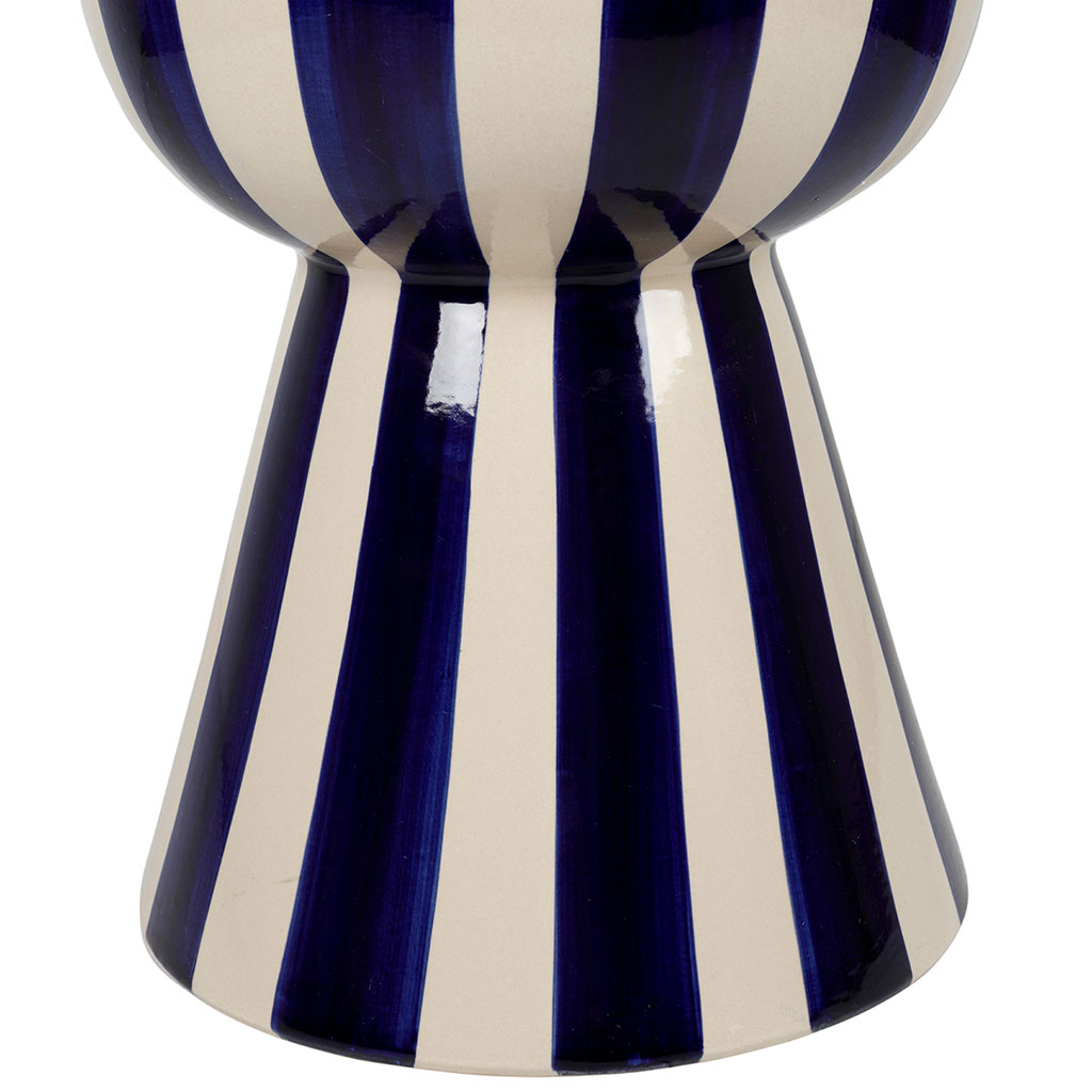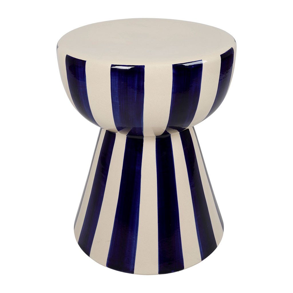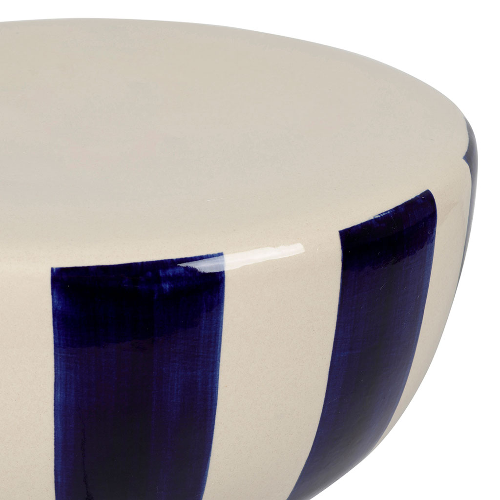 05 56 69 68 67-contact@fabriquedestyles.frTable d'appoint ronde en grès rayé indigo et blanc d33cm - Artist