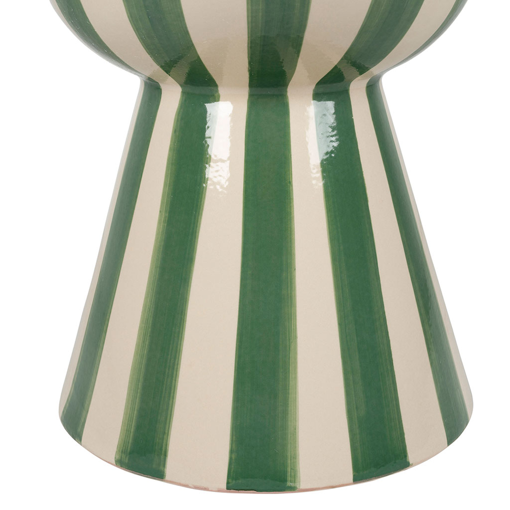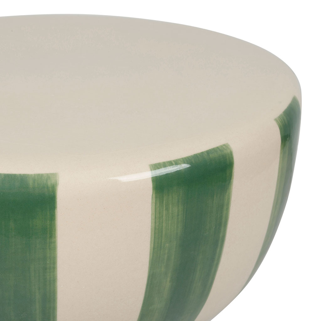 05 56 69 68 67-contact@fabriquedestyles.frTable d'appoint ronde en grès rayé vert et blanc d33cm - Artist