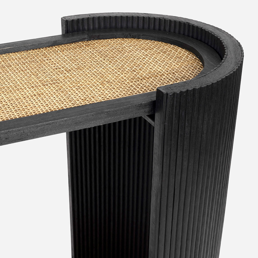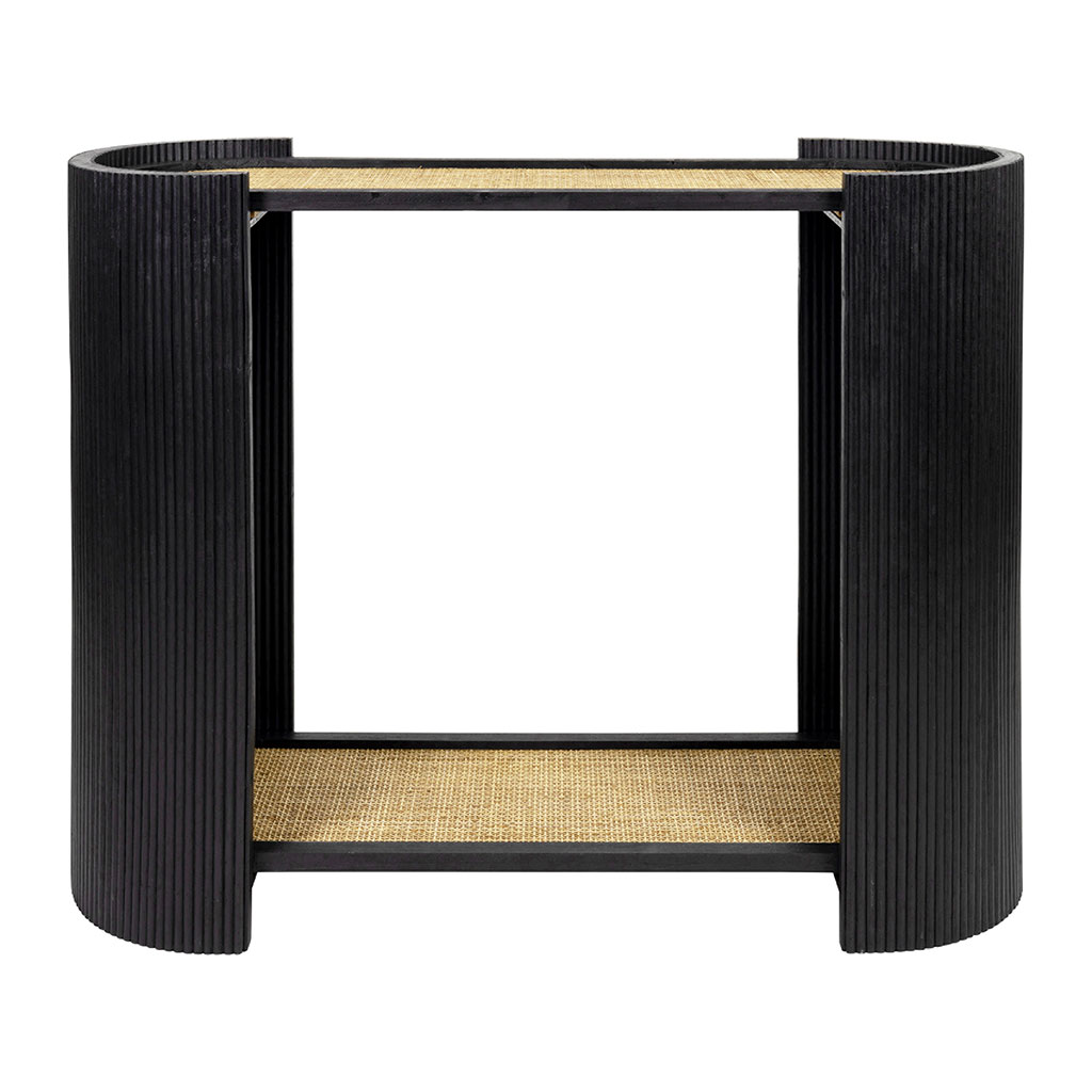 Découvrez la console 2 niveaux en rotin et bambou noir – Saori, une pièce de mobilier idéale pour apporter une touche naturelle et moderne à votre intérieur.