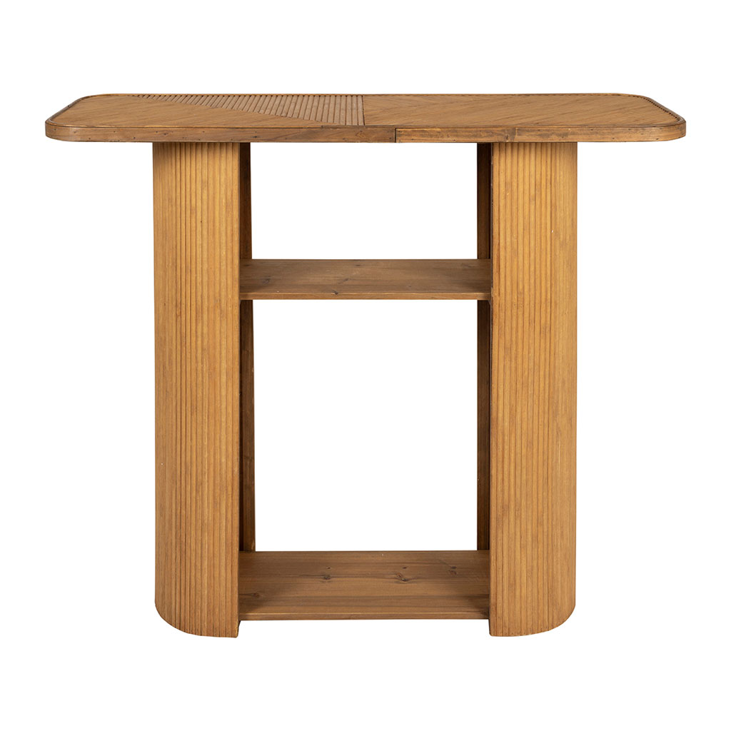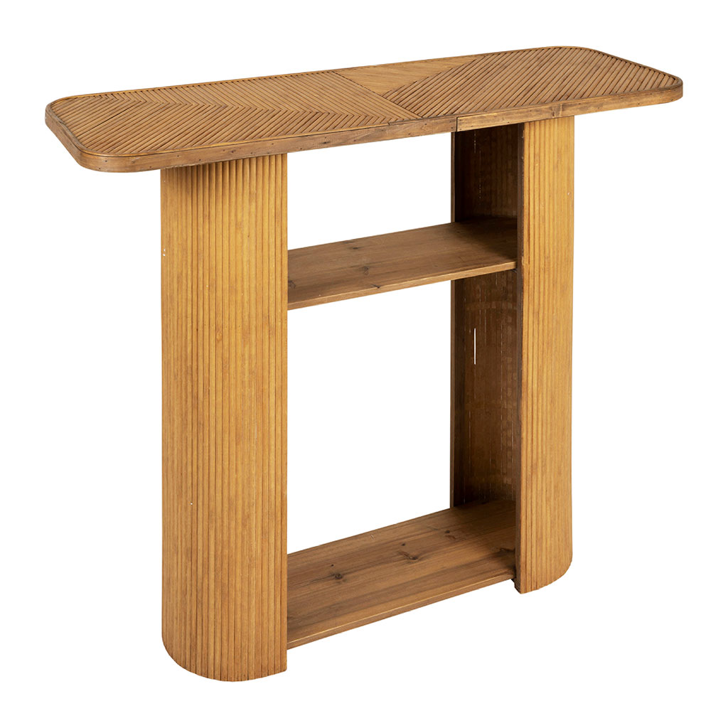 Découvrez notre console en bambou et sapin naturel Saori, mesurant 100xH87cm.
