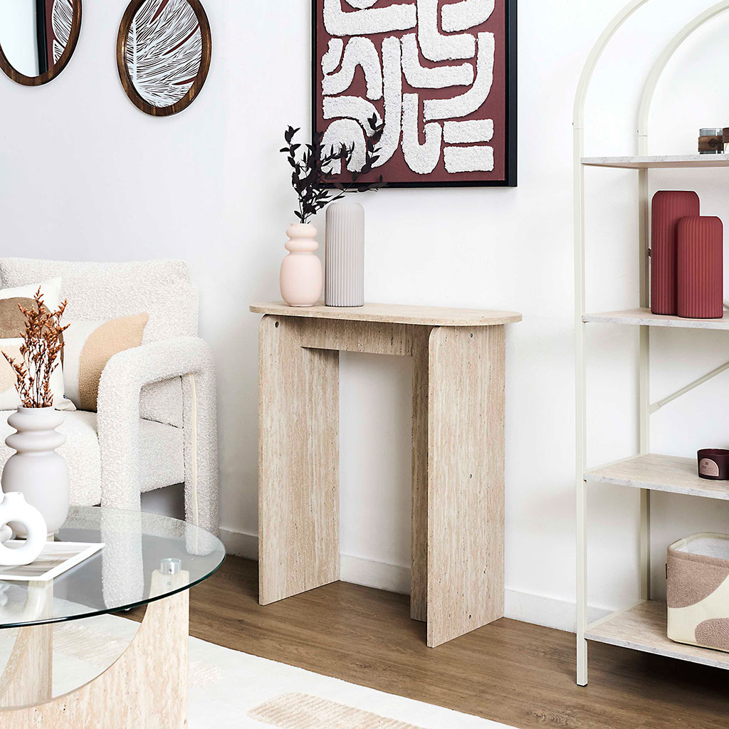 Parfaite dans une entrée, un salon ou une chambre, elle offre une surface idéale pour exposer vos objets décoratifs, vases ou cadres photo, tout en occupant peu d’espace au sol.