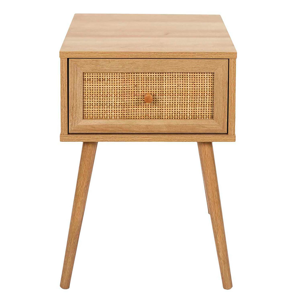 Un inconditionnel de la tendance bohème, le cannage s'associe au mdf pour un chevet 1 tiroir accessible et fonctionnel.