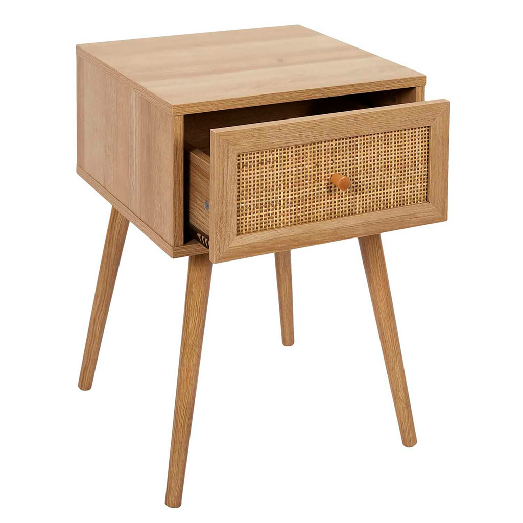 05 56 69 68 67-contact@fabriquedestyles.frTable de chevet en bois et cannage 1 tiroir - Baia