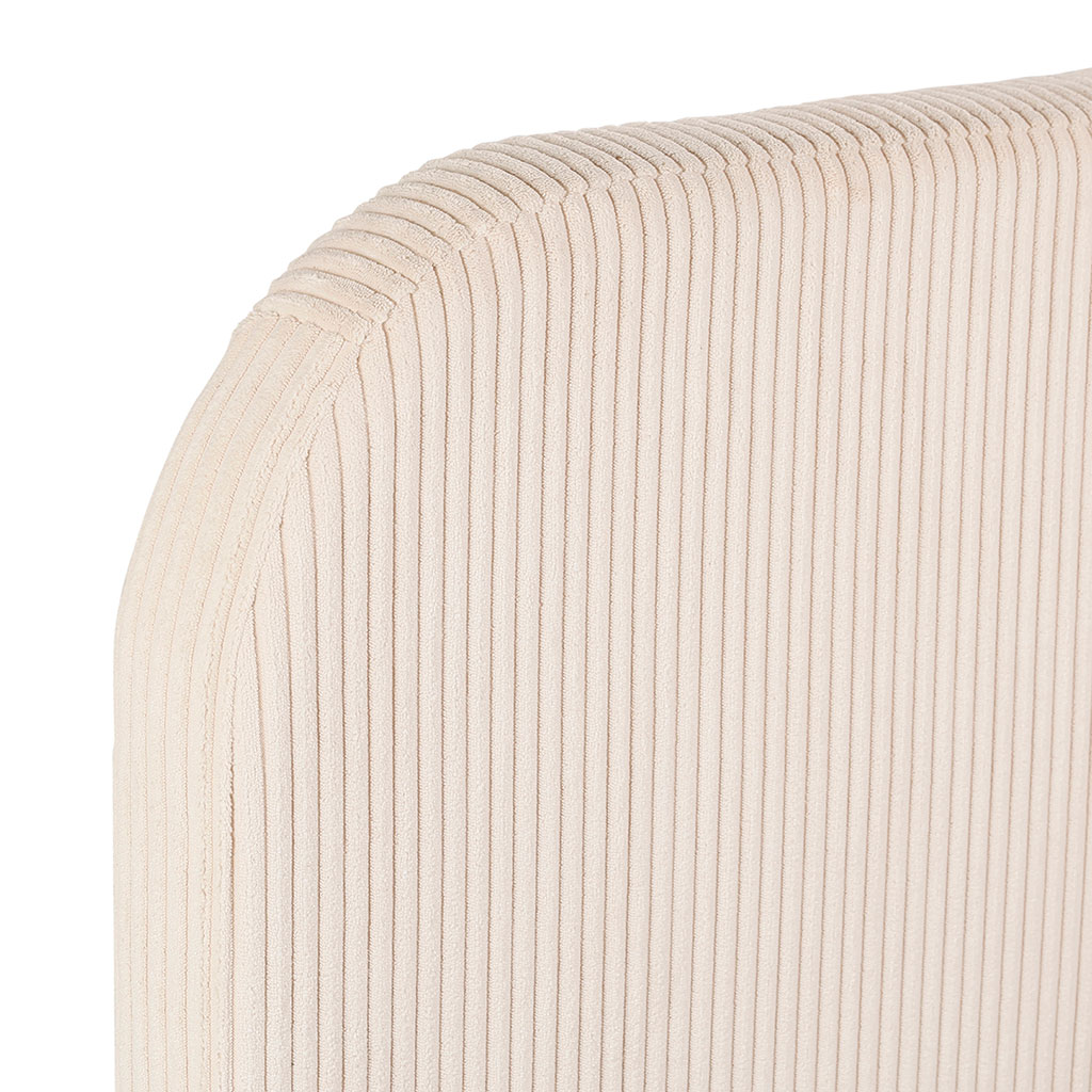 Sa matière en hévéa assure une robustesse et une durabilité remarquables, tandis que le tissu côtelé crée un effet visuel chaleureux et accueillant.