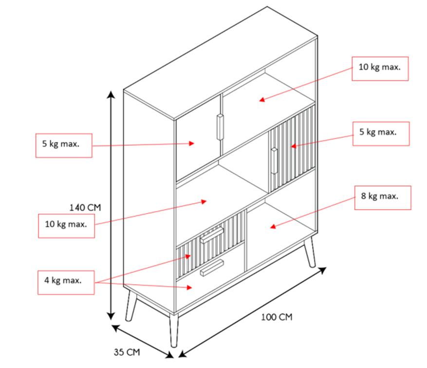 Ce meuble polyvalent de 140 cm de hauteur allie design vintage et fonctionnalité moderne.