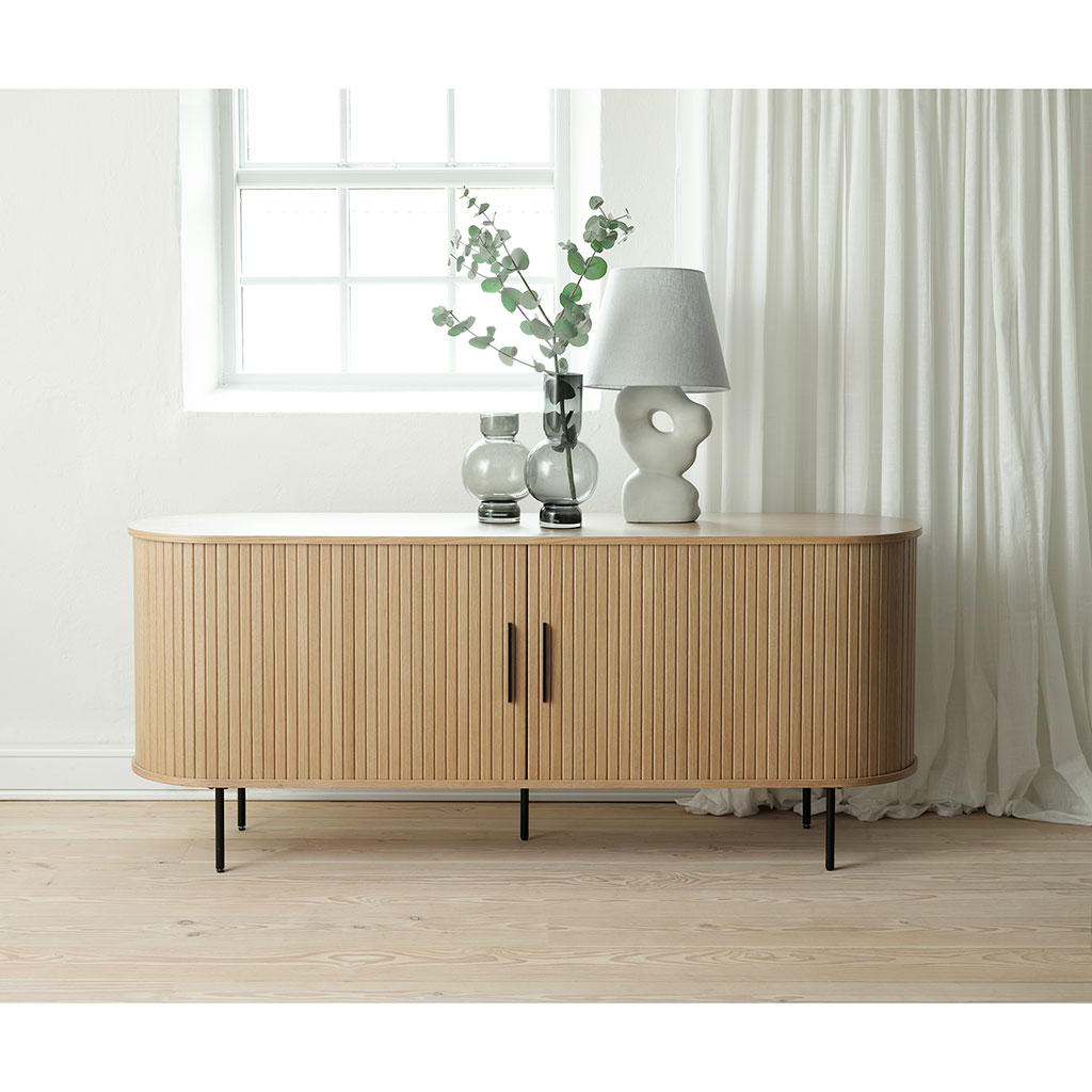 Le buffet en panneau de bois et chêne naturel Nola, d'une dimension de 180x45cm, est un choix idéal pour ajouter une touche de design et de praticité à votre intérieur.