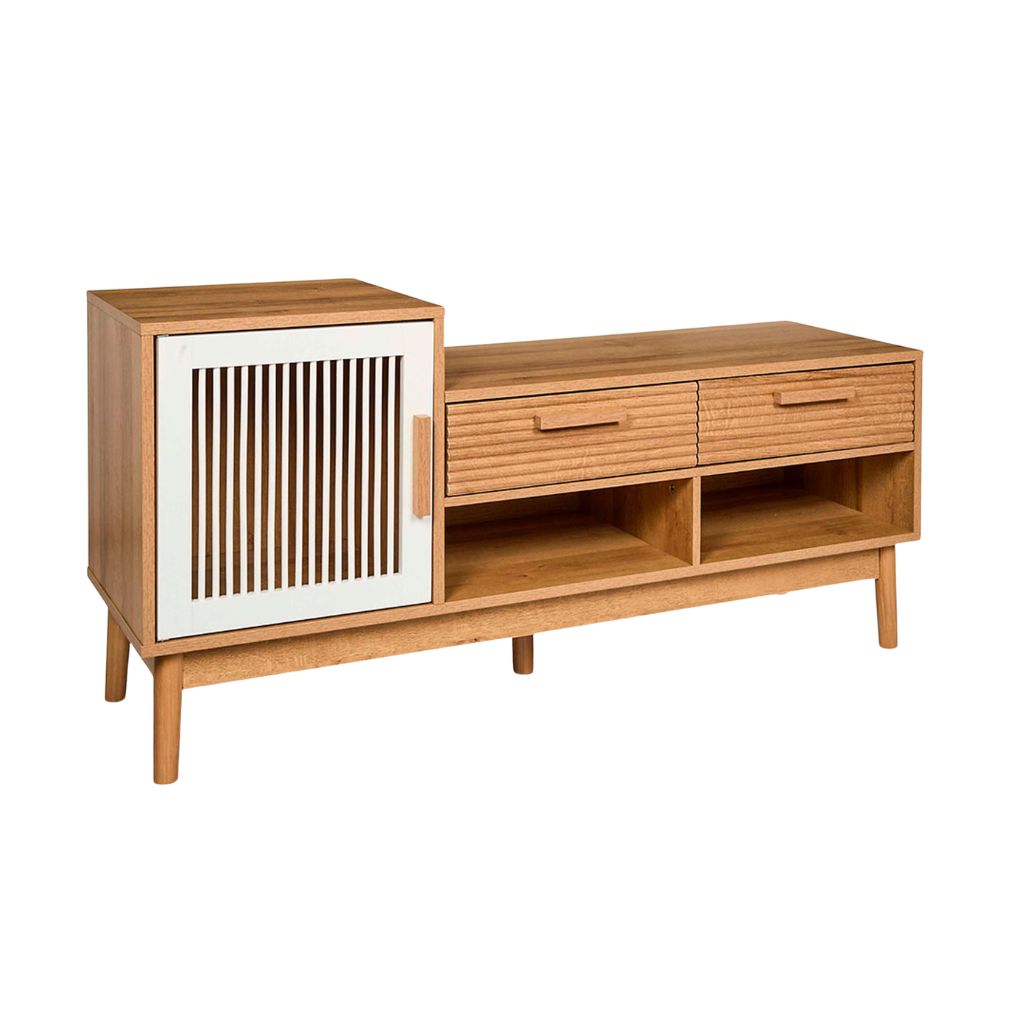 Doté de deux tiroirs spacieux et d'une porte pratique, cet élément de mobilier est parfait pour organiser votre entrée de manière efficace et stylée.