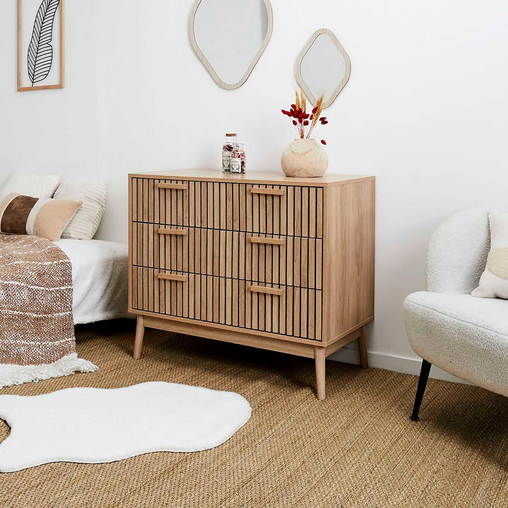 Parfaite pour ranger et organiser vos affaires, cette commode apportera une touche chaleureuse à votre intérieur grâce à sa finition naturelle.