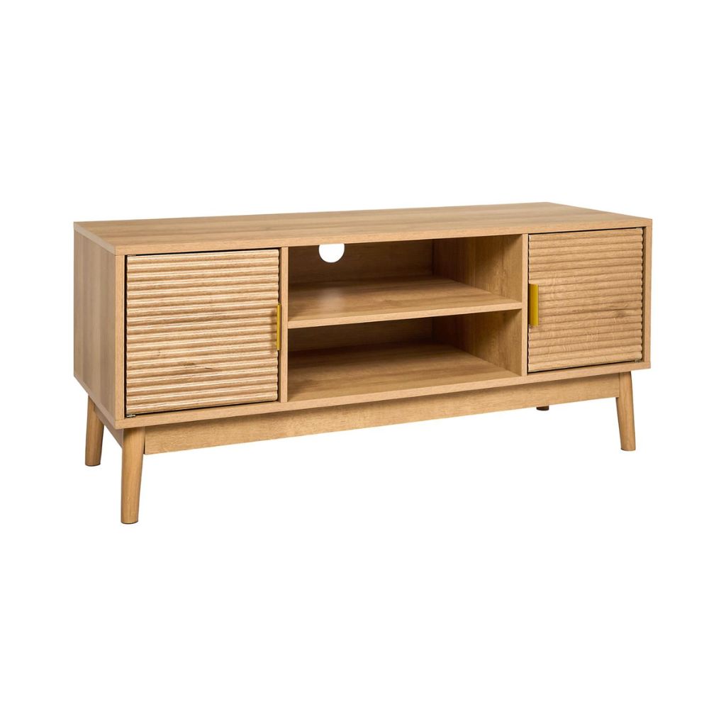 Ce meuble optimise l'espace avec des étagères ouvertes et des compartiments fermés, idéaux pour ranger vos appareils multimédias, vos consoles de jeux ou même quelques livres et magazines.