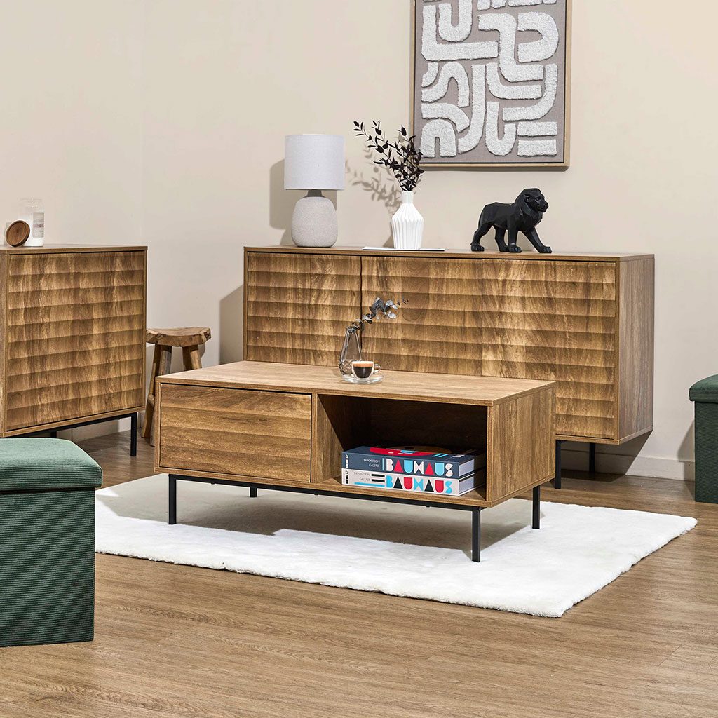 05 56 69 68 67-contact@fabriquedestyles.frTable basse 1 tiroir 1 niche en bois 110x55cm - Célia