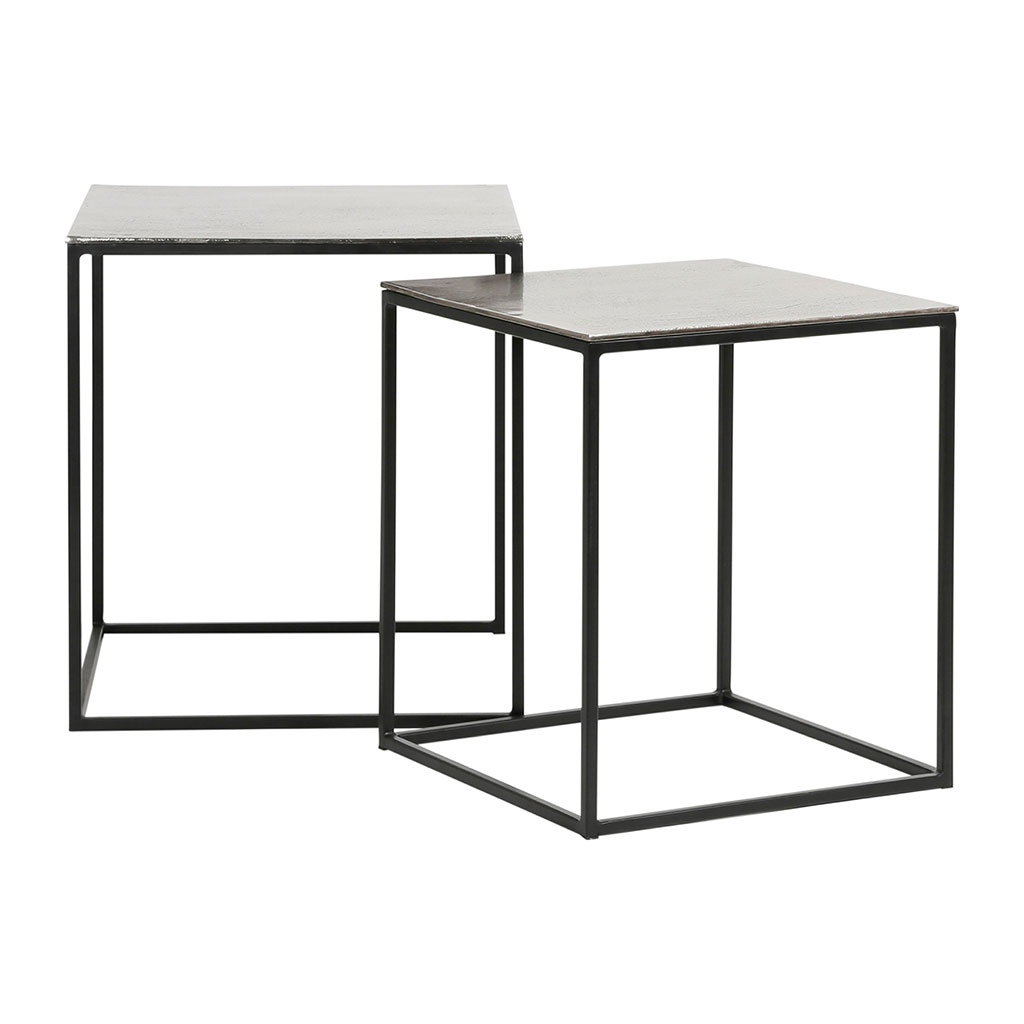 05 56 69 68 67-contact@fabriquedestyles.frTable basse gigogne carrée (lot de 2) en aluminium et fer argenté - Felia
