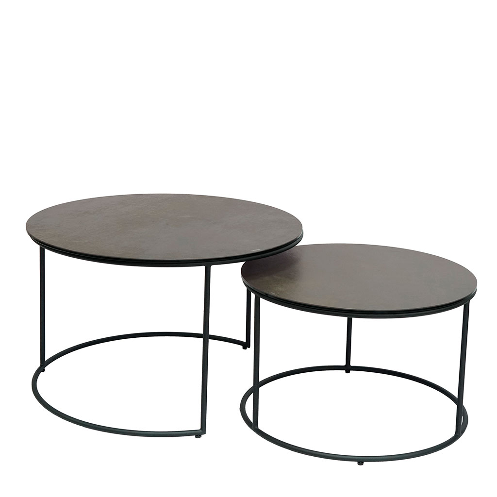05 56 69 68 67-contact@fabriquedestyles.frTable basse gigogne (lot de 2) en céramique bronze et métal noir - Ema