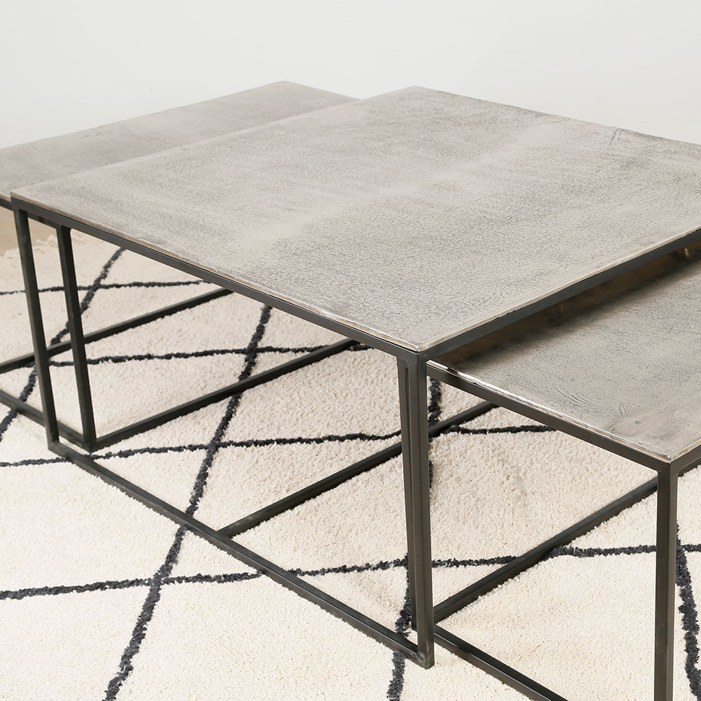 Apportez une touche moderne à votre salon avec la table basse gigogne rectangulaire (lot de 3) en aluminium et fer argenté Felia.