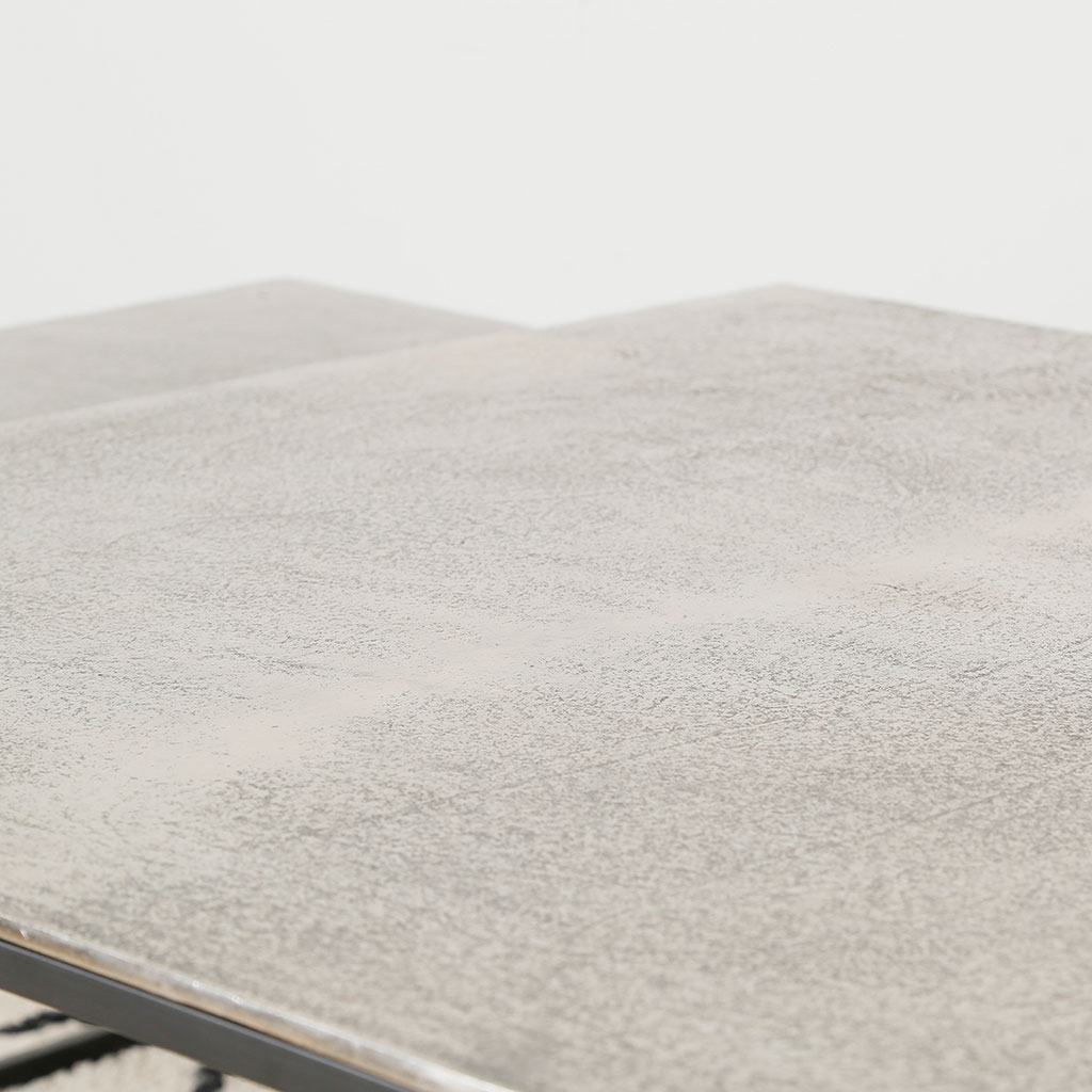 Le plateau en aluminium martelé, magnifiés par une finition argentée obtenue grâce à la galvanoplastie, reflète subtilement la lumière, apportant une ambiance à la fois sophistiquée et chaleureuse à votre espace de vie.