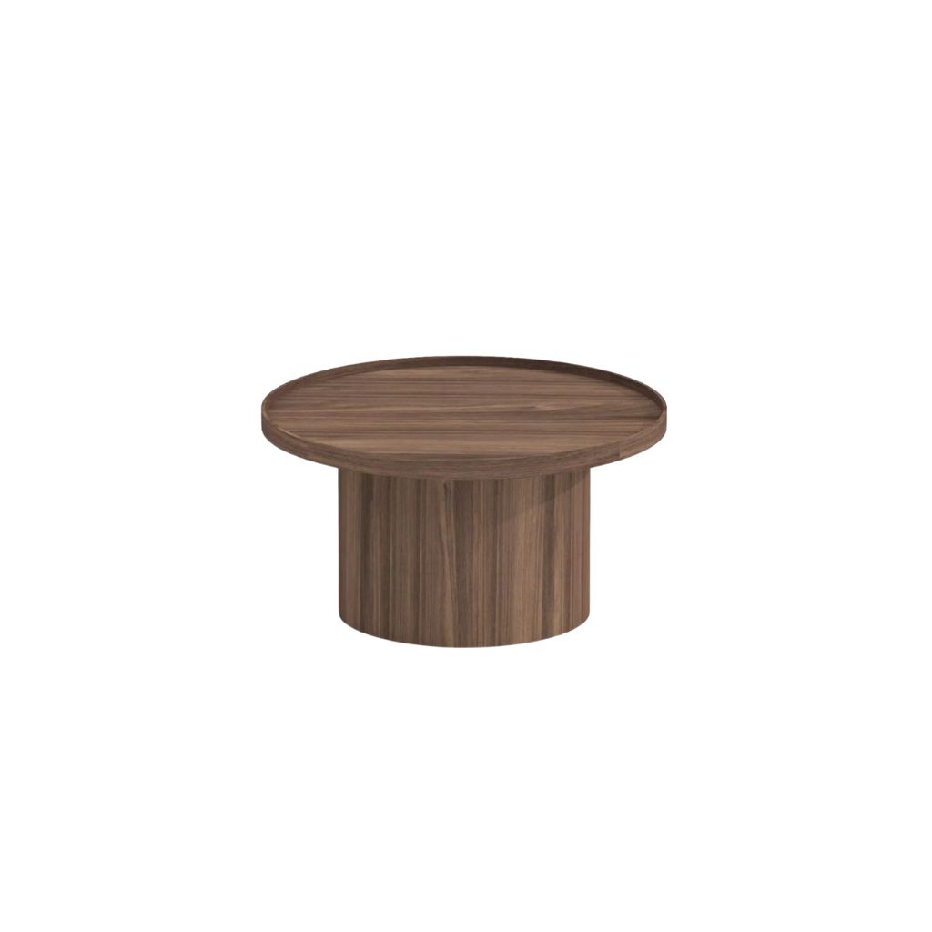Apportez une touche naturelle à votre salon avec la table basse ronde Plasma, dotée d'un élégant plateau en placage de bois de châtaignier.