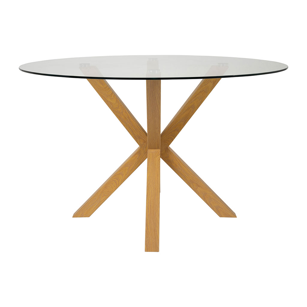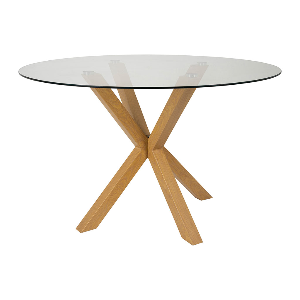 Transformez votre espace de vie avec cette table de salle à manger ronde alliant verre trempé et métal naturel de 119 cm de diamètre.